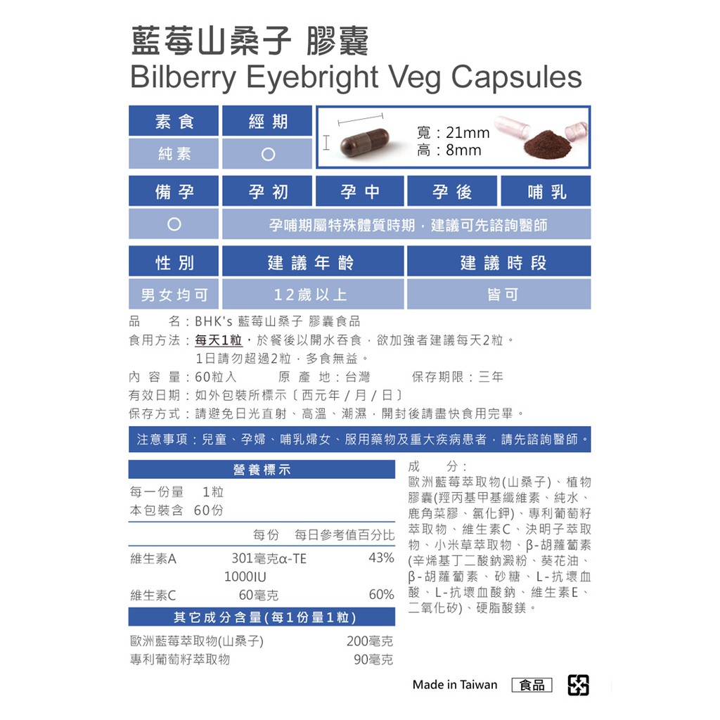 BHK’s 藍莓山桑子 植物膠囊 (60粒/盒) 官方旗艦店1盒|2盒Well BeingBHK’s 官方旗艦店