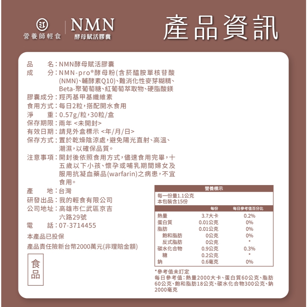❮營養師輕食❯NMN酵母賦活膠囊升級版 一入組(30顆/入) 真正含有 NMN ,600% 狂飆升級,白藜蘆醇添加一入Well Being【唯一直營】營養師輕食®|2025全台唯一 榮獲國際+國內純淨雙標章