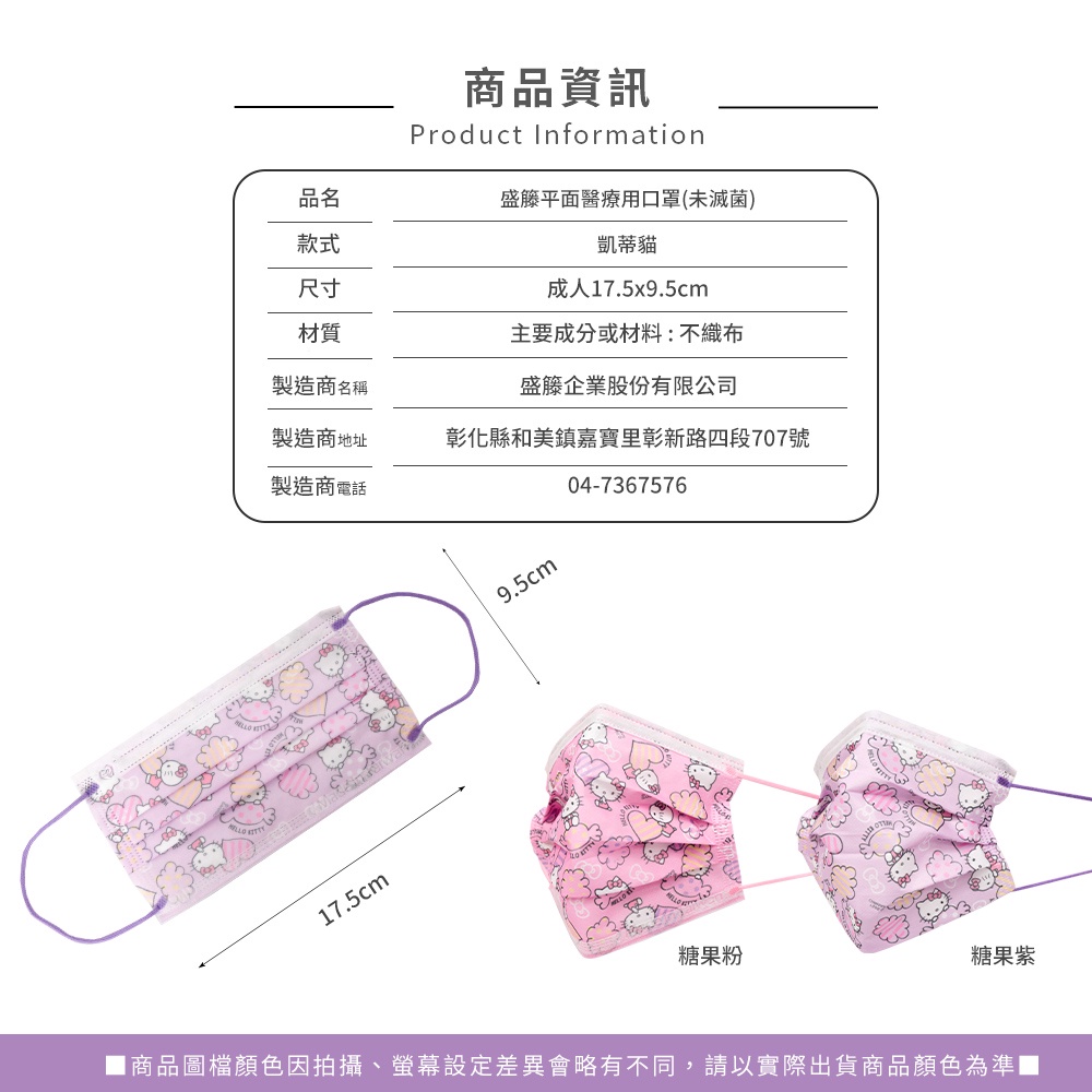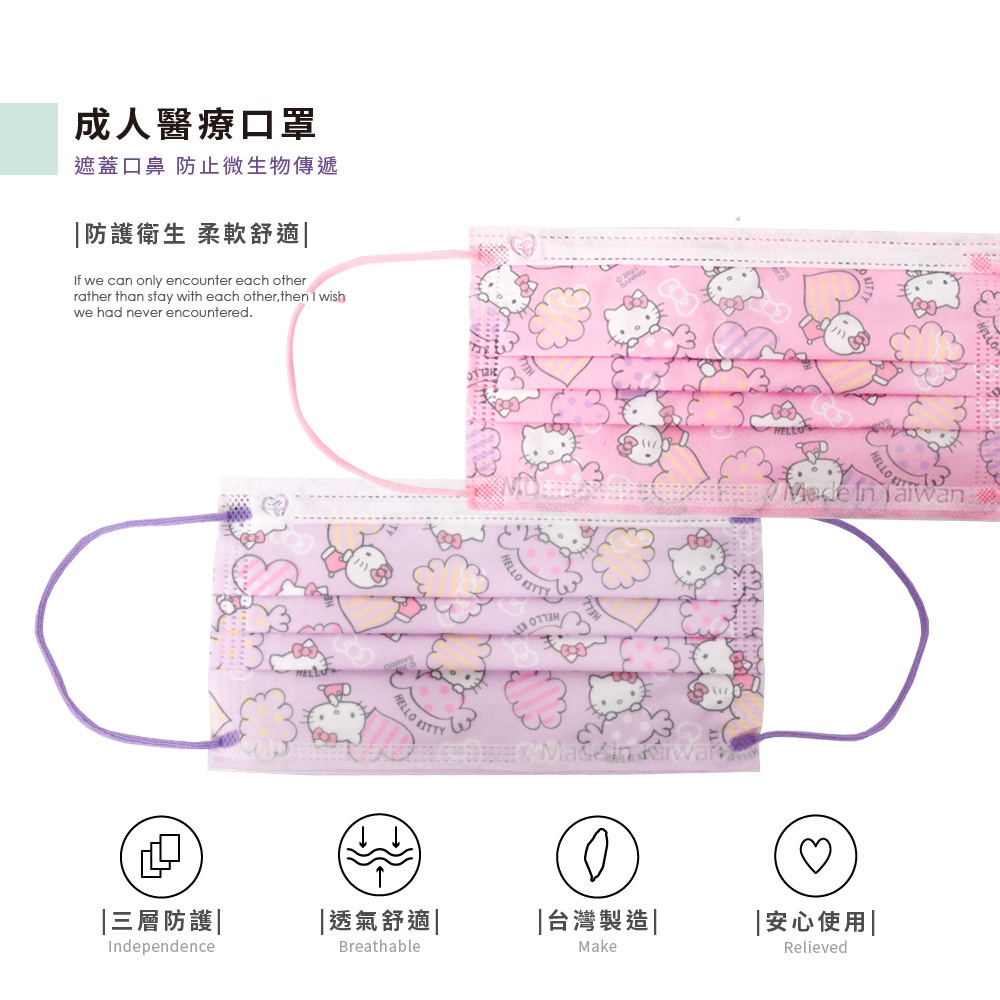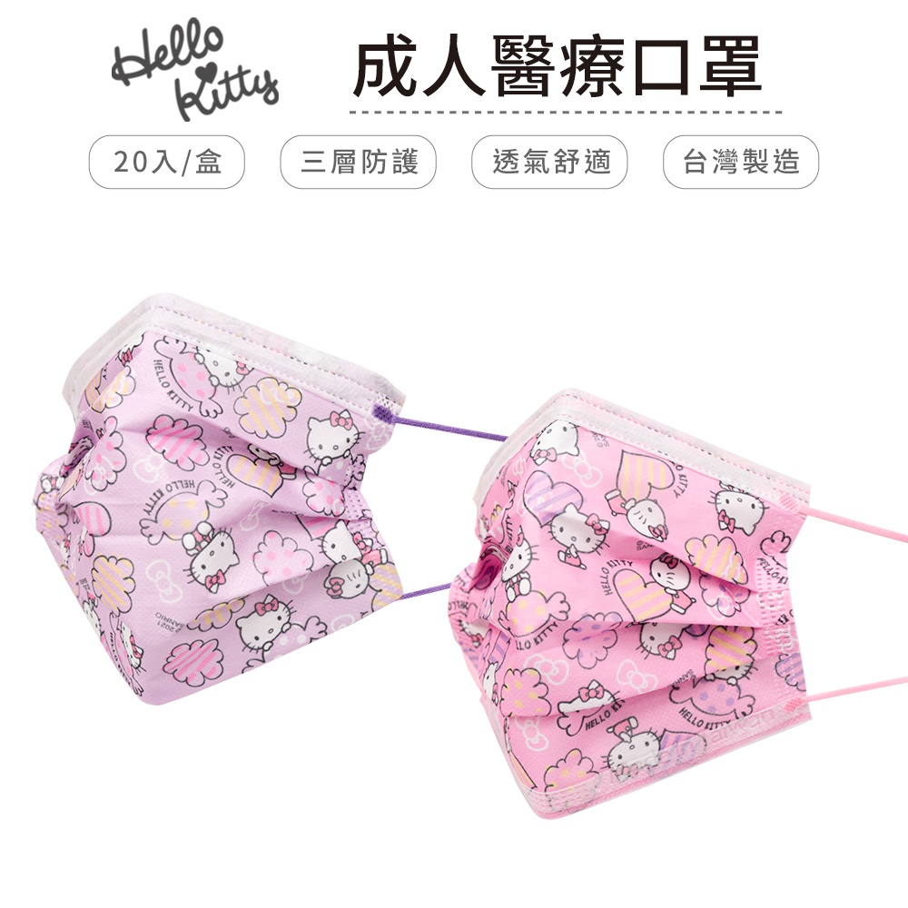 HELLO KITTY凱蒂貓 成人 醫療口罩 正版授權(20入/盒)【5ip8】HB0195糖果粉|糖果紫Medical Gloves & Masks5IP8居家生活館