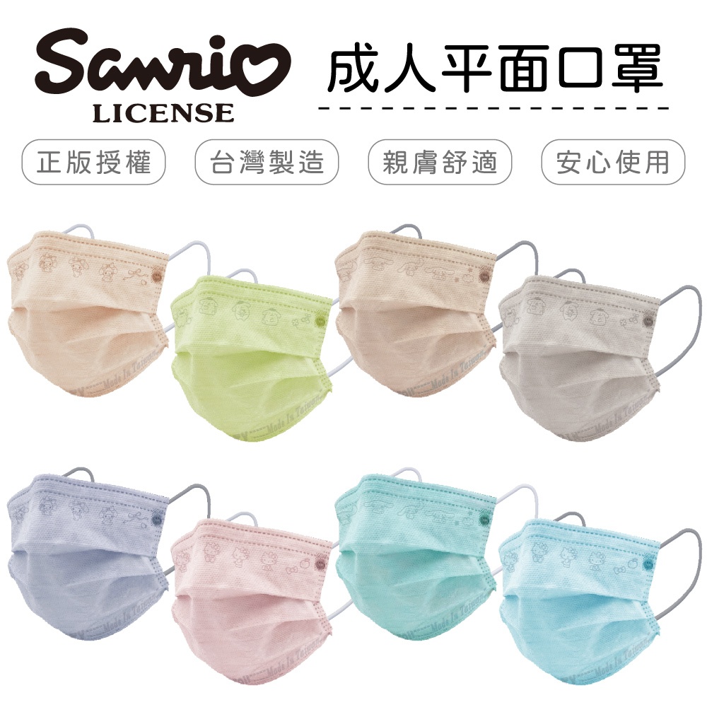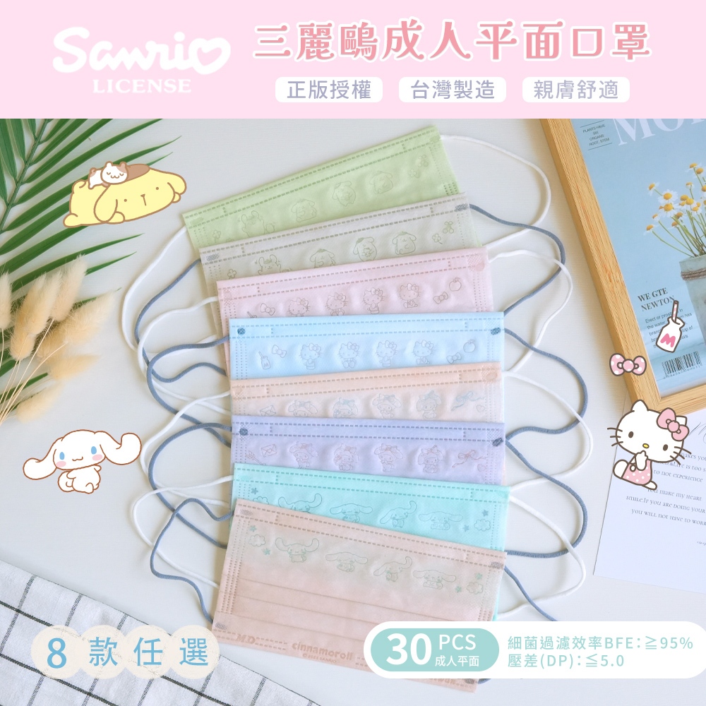 三麗鷗 Sanrio 平面醫療口罩 布丁狗 美樂蒂 大耳狗 凱蒂貓 成人30入/盒 【5ip8】TN0056美樂蒂-玫瑰金|美樂蒂-夢幻紫|大耳狗-湖水綠|大耳狗-奶杏色|凱蒂貓-溫暖粉|凱蒂貓-天空藍|布丁狗-青蘋果綠|布丁狗-卡其灰Medical Gloves & Masks5IP8居家生活館