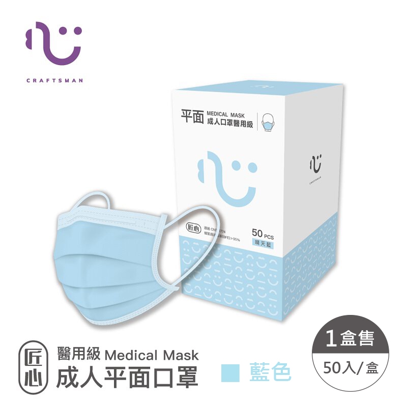 【匠心-三層平面醫用口罩-L尺寸】藍色 (適合一般成人) 每盒50入【匠心-三層平面醫用口罩-L尺寸】藍色 (適合一般成人) 每盒50入Medical Gloves & Masks923就愛傘 官方直營店