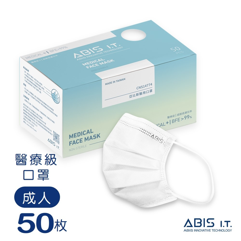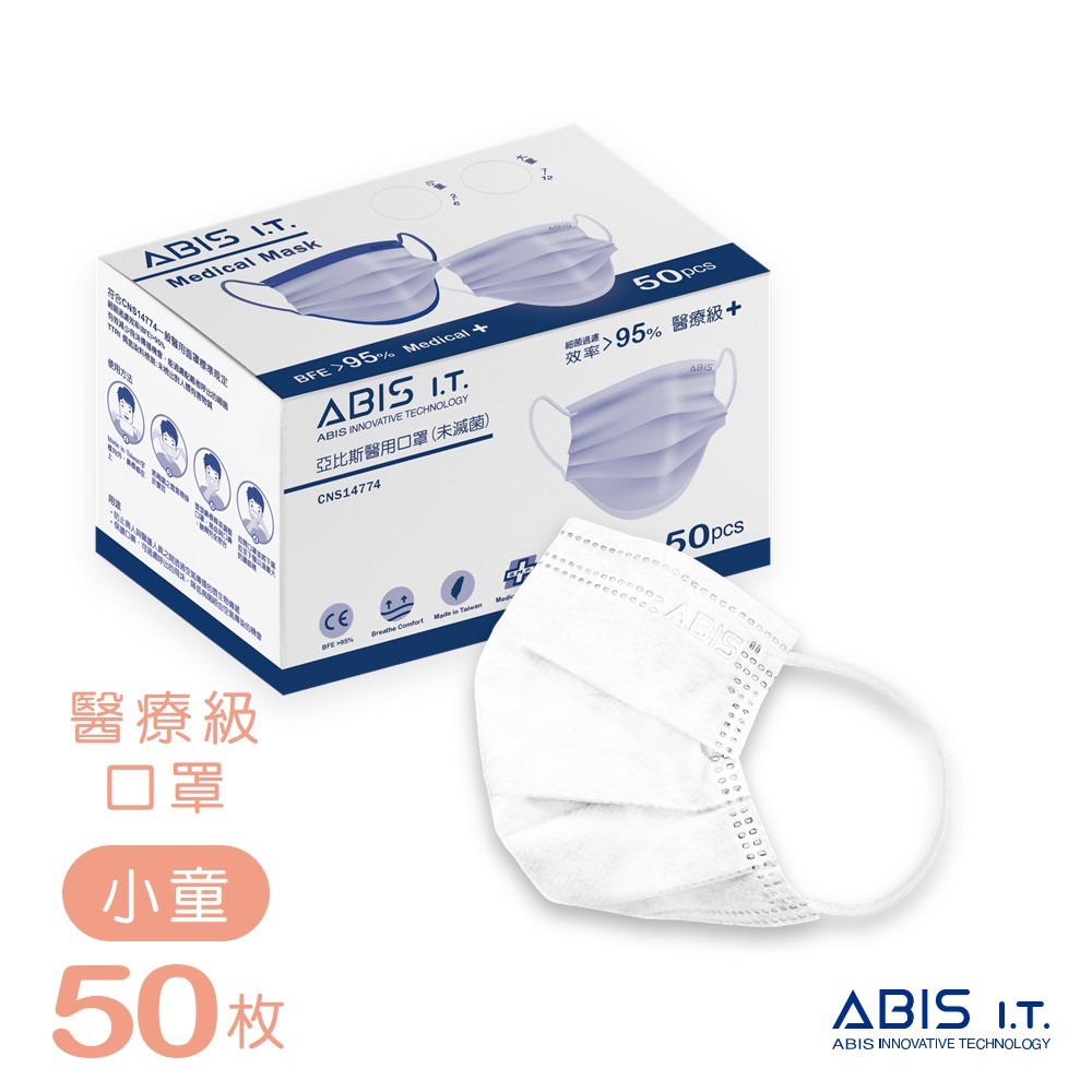 ABIS醫用口罩【成人常規|小臉|大童|小童】台灣製 MD雙鋼印 素色口罩-天使白 (50入盒裝)成人常規|成人小臉|大童|小童Medical Gloves & MasksABIS 亞比斯醫用口罩品牌館