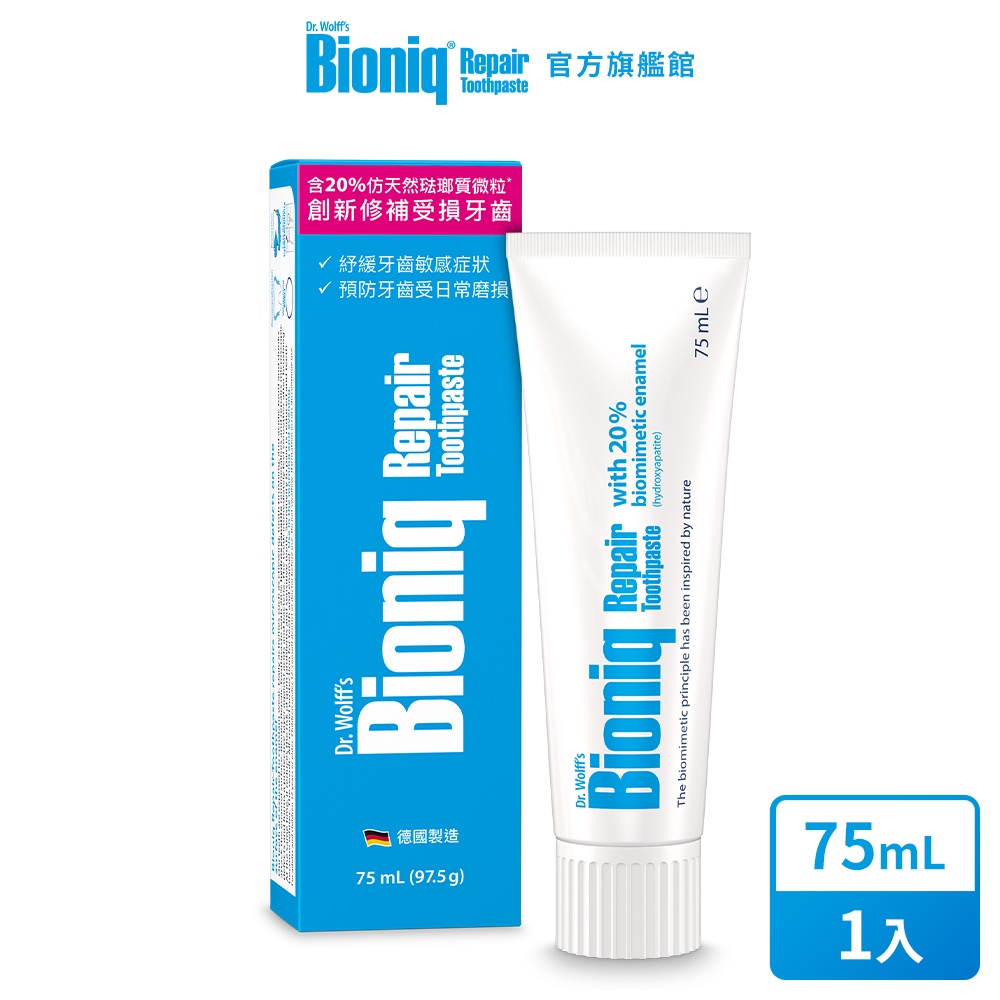 【Bioniq 貝歐尼】修復牙膏75ml(刷牙同時修復琺瑯質/遇冷熱飲敏感刺激、銀髮族、孕婦適用)【Bioniq 貝歐尼】修復牙膏75ml(刷牙同時修復琺瑯質/遇冷熱飲敏感刺激、銀髮族、孕婦適用)Oral CareAlpecin/Plantur/Bioniq貝歐尼-Dr. Wolff官方商城