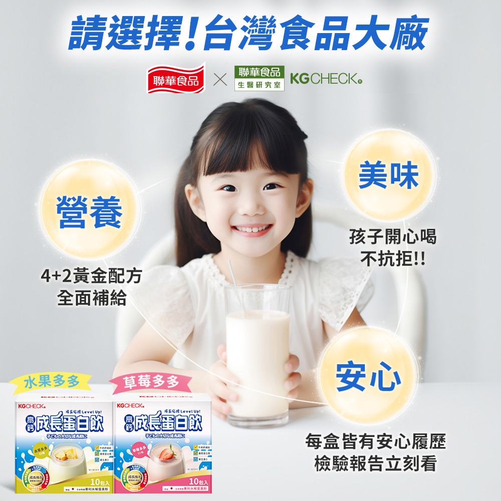 【聯華食品 KGCHECK】高鈣成長蛋白飲-水果/草莓多多風味(34gX5包)-綜合嘗鮮體驗組【聯華食品 KGCHECK】高鈣成長蛋白飲-水果/草莓多多風味(34gX5包)-綜合嘗鮮體驗組Fitness【KGCHECK 聯華食品】生醫研究室