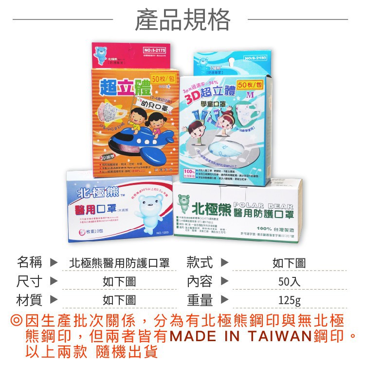 北極熊 醫用防護口罩 50入 節慶款10入【小麥購物】【S156】醫療口罩 醫用口罩 台灣製 成人口罩 日昇 北極熊口罩01 平面50入-素色款|顏色隨機|02 節慶款-康乃馨、企鵝隨機(10入)|03 節慶款-聖誕款隨機(10入)|04 平面50入-撞色款|顏色隨機Medical Gloves & Masks 小麥購物