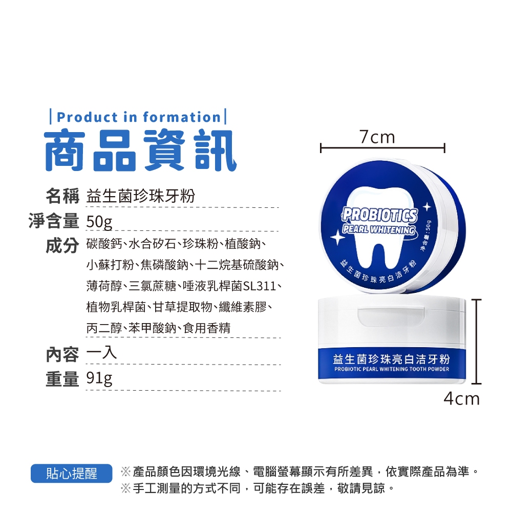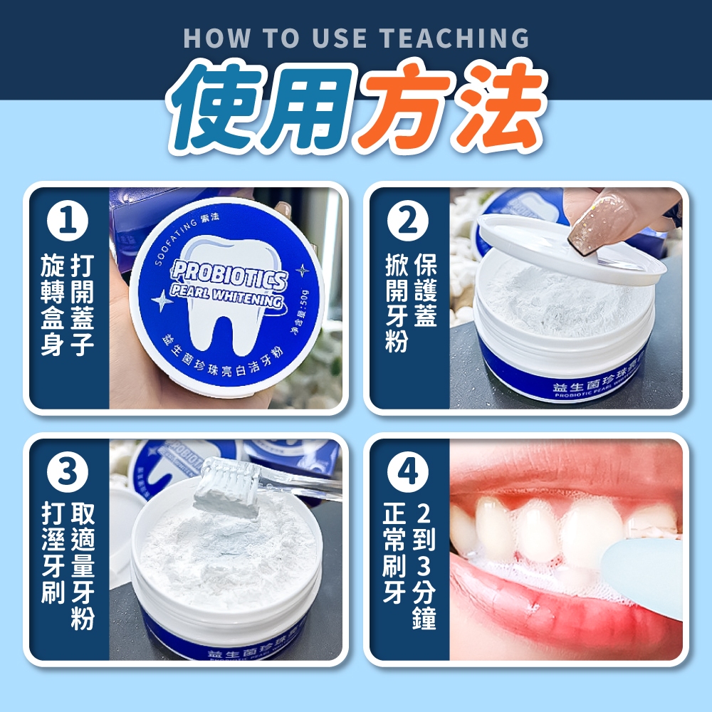 益生菌珍珠牙粉 益生菌牙粉 珍珠牙粉 淨白牙粉 牙粉 益生菌清潔牙粉 牙膏 去黃去漬 潔白牙齒【小麥購物】【S347】益生菌Oral Care 小麥購物