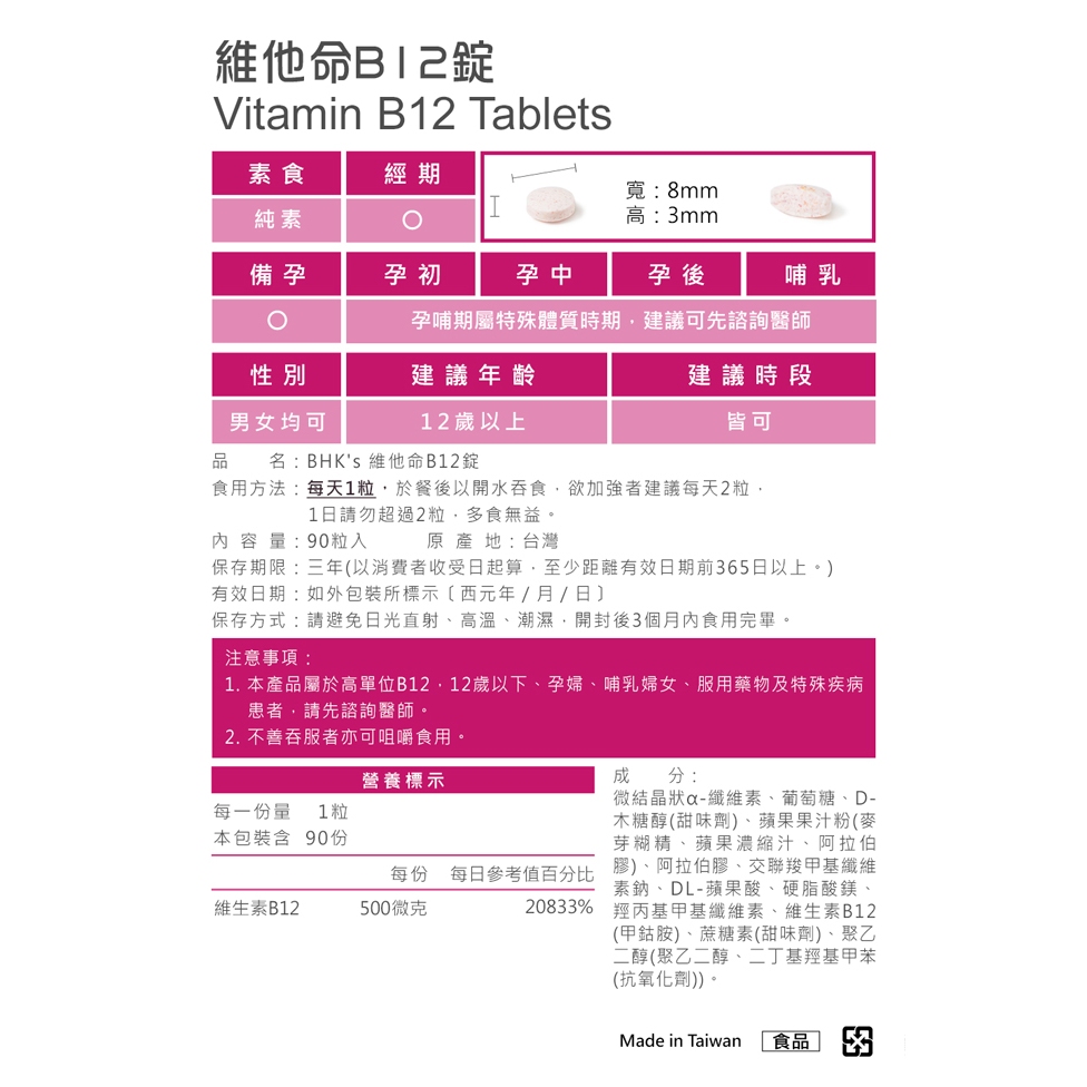 BHK’s 維他命B12錠 (90粒/盒)2盒組 官方旗艦店BHK’s 維他命B12錠 (90粒/盒)2盒組 官方旗艦店Well BeingBHK’s 官方旗艦店