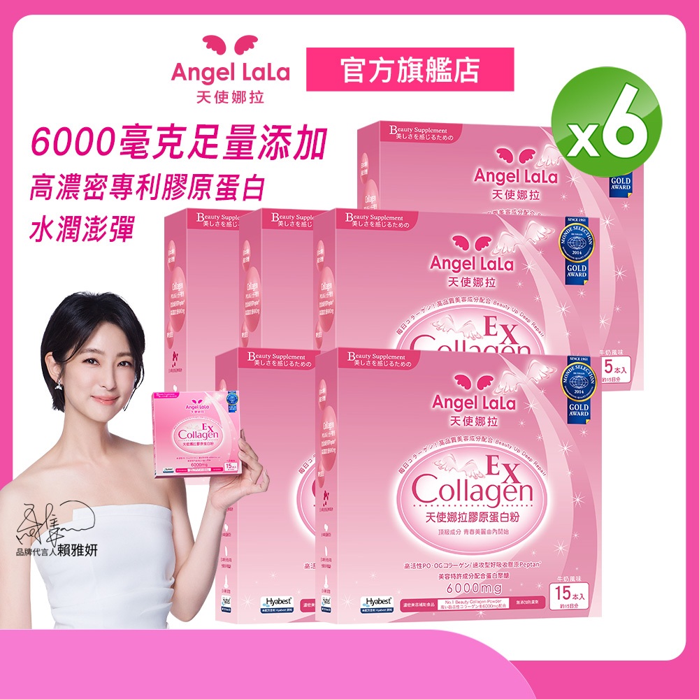 【Angel LaLa天使娜拉】EX膠原蛋白粉(牛奶風味/15包/盒)x6盒 賴雅妍代言 胜肽 蛋白聚醣 玻尿酸 珍珠粉6盒Beauty Supplements【官方旗艦店】Angel LaLa 天使娜拉 你的美麗生活
