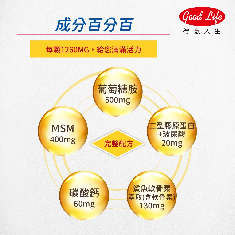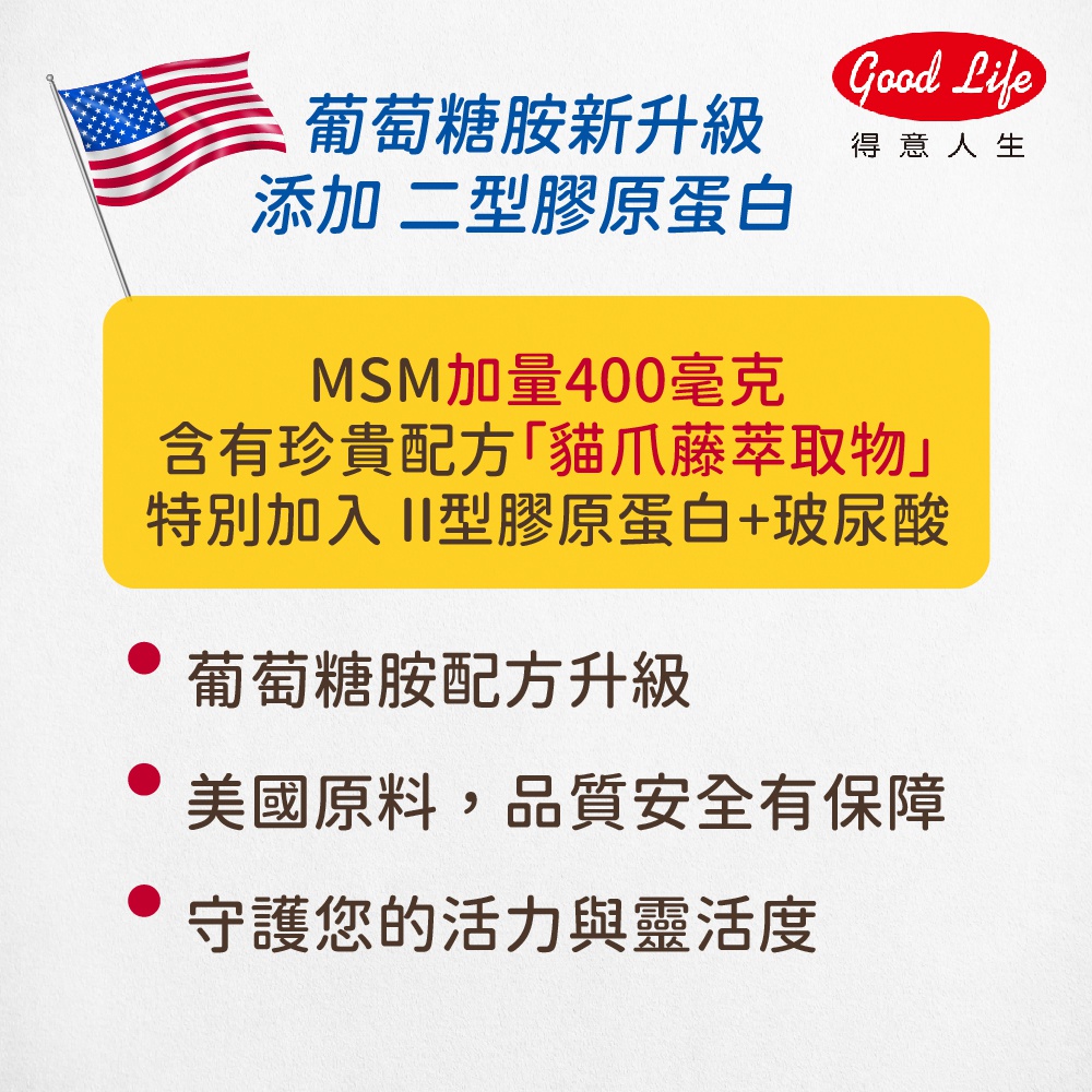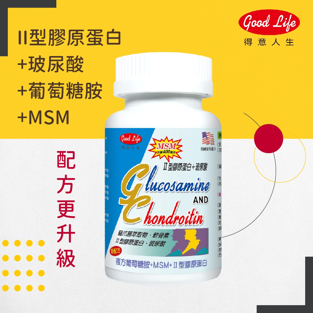 【得意人生】新葡萄糖胺+MSM膜衣錠(含II型膠原蛋白,玻尿酸) 一入(60錠)【得意人生】新葡萄糖胺+MSM膜衣錠(含II型膠原蛋白,玻尿酸) 一入(60錠)Well Being《Goodlife得意人生》