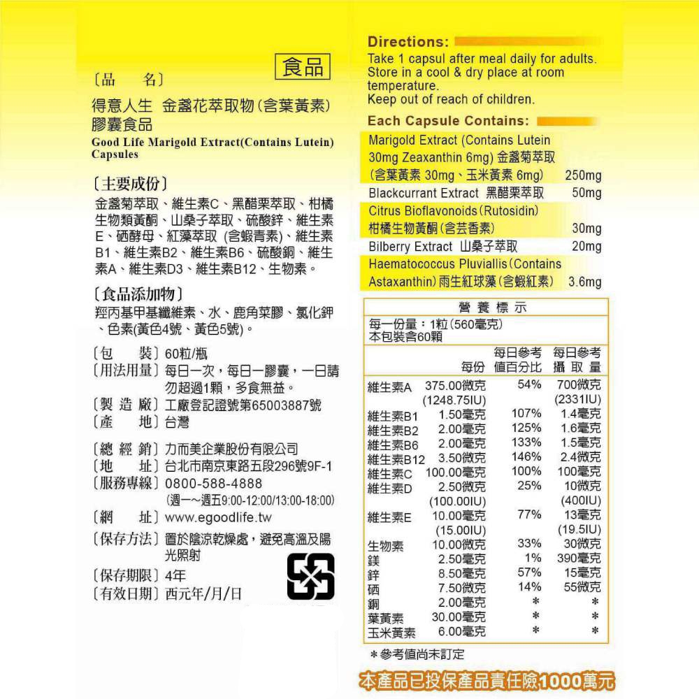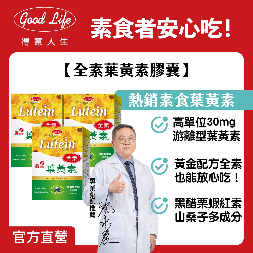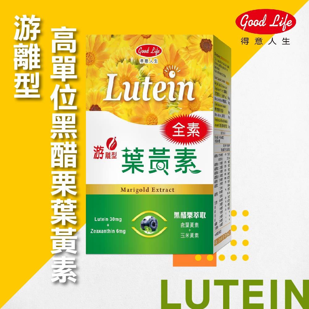【得意人生】全素高單位葉黃素 (含黑醋栗萃取) (60粒/盒) 游離型/素食者/金盞菊/玉米黃素1盒|3盒Well Being《Goodlife得意人生》