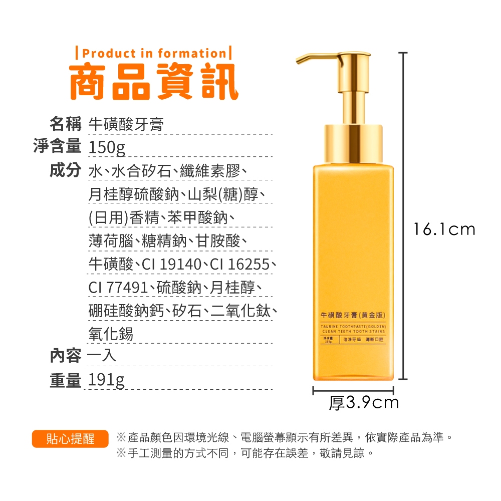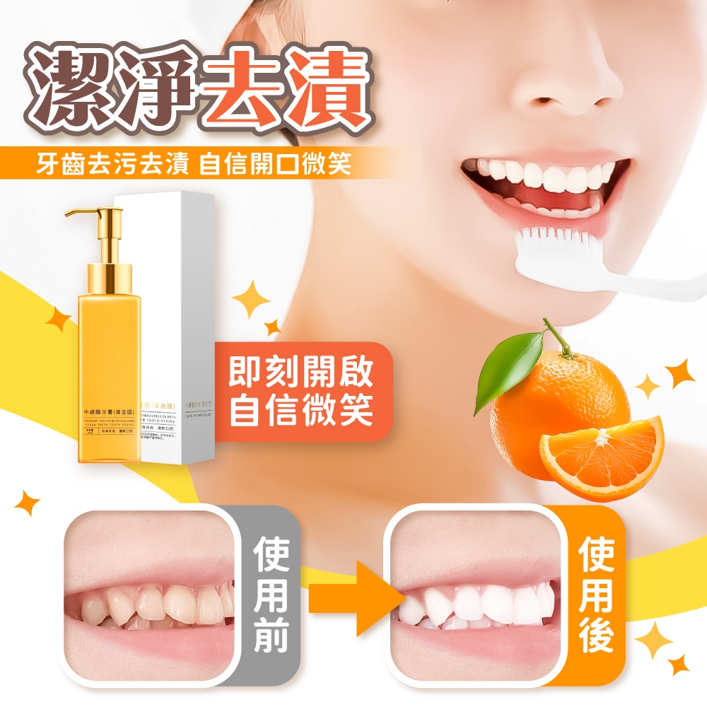 牛磺酸牙膏 牙膏 黃金牙膏 呵護牙齒 去牙漬 去黃去煙漬 去口臭 清新口氣 深層清潔口腔【小麥購物】【S355】FOral Care 小麥購物