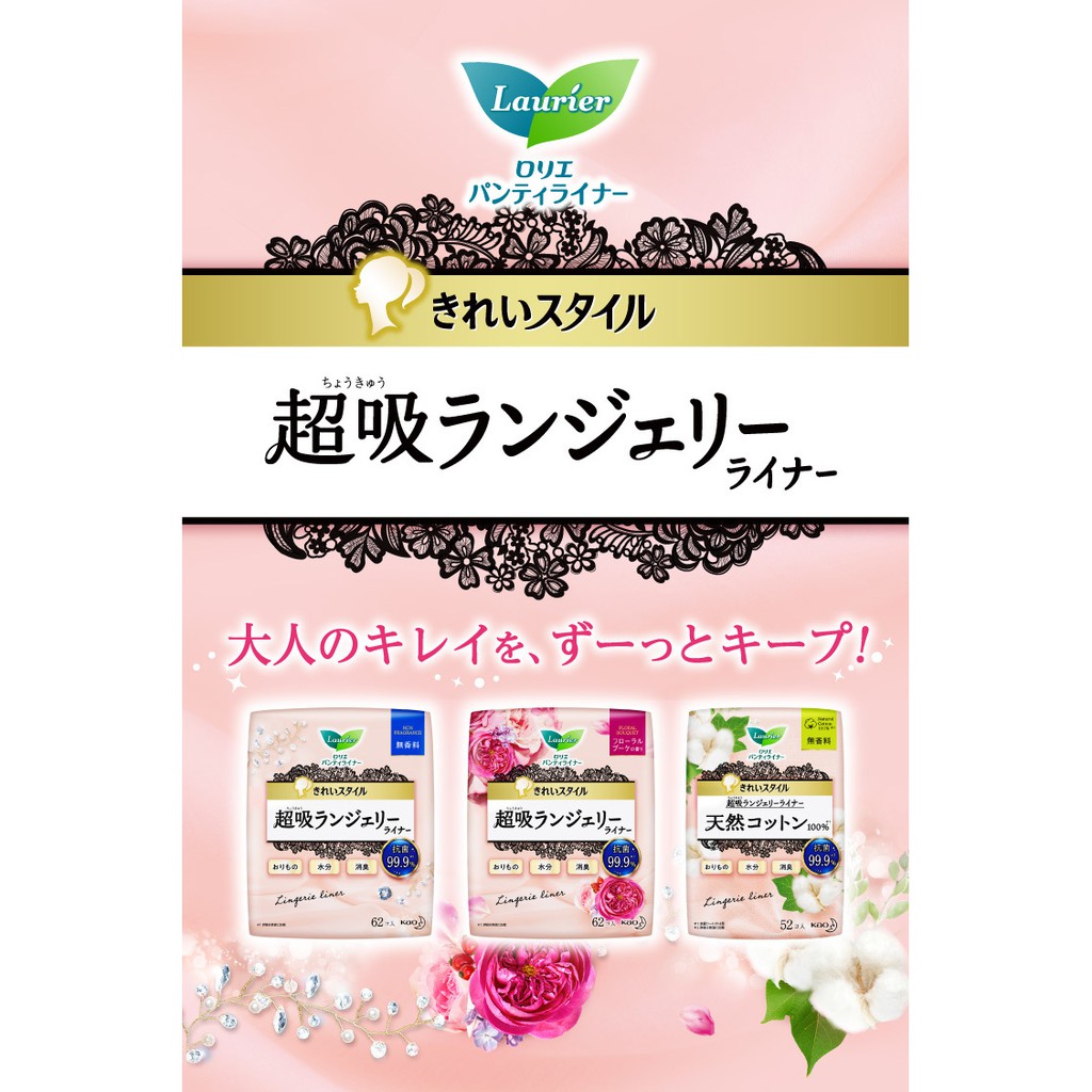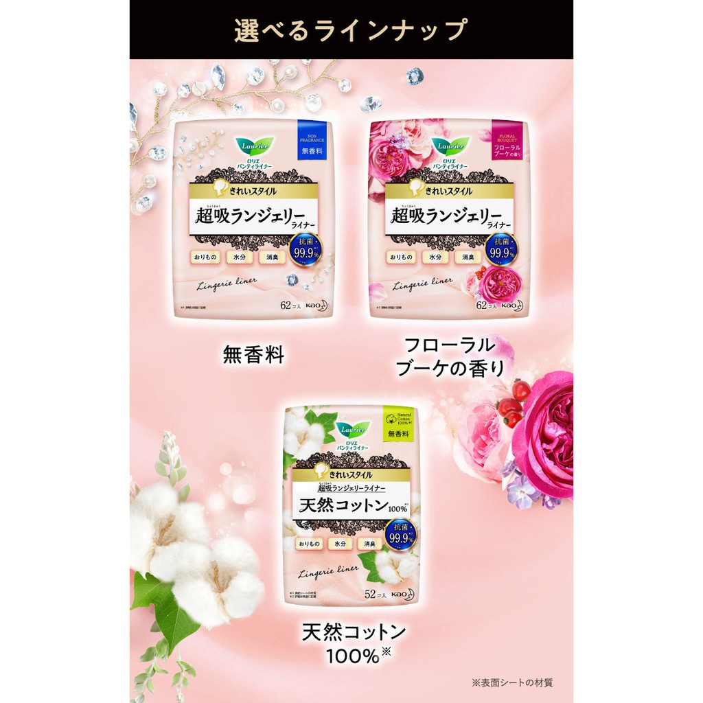 花王Kao Laurier蕾妮亞 三倍吸收力衛生護墊 【樂購RAGO】 日本製無香料(62入)|花卉香氣(62入)|100%棉花(52入)Feminine Care【樂購RAGO】