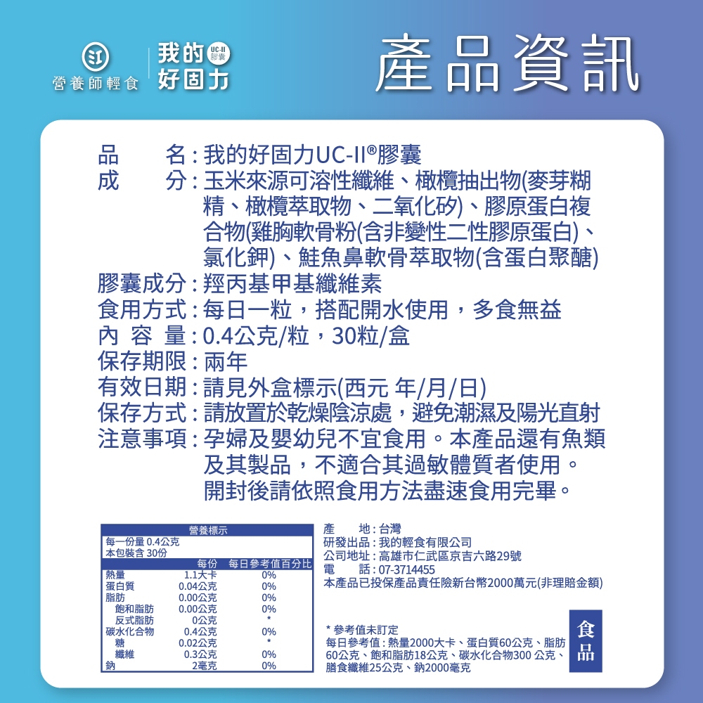 ❮營養師輕食❯我的好固力 五入組(30顆/入)UC2+蛋白聚醣,高於葡萄糖胺2倍效能,好固力1組為5入Well Being【唯一直營】營養師輕食®|2025全台唯一 榮獲國際+國內純淨雙標章