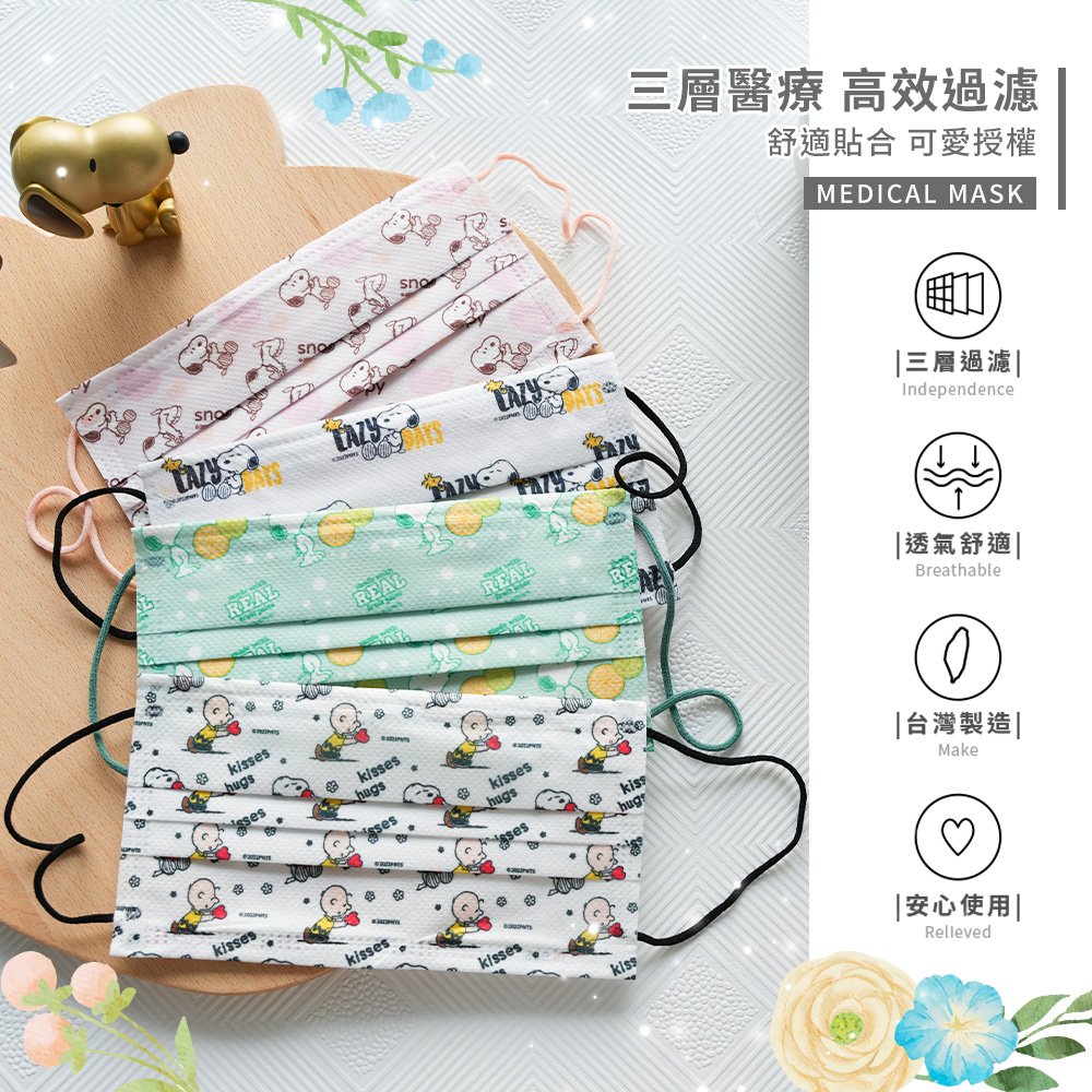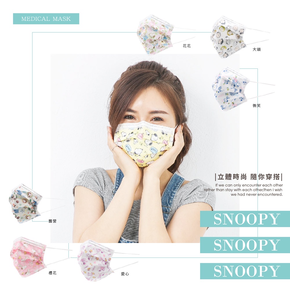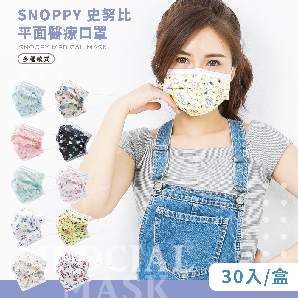 史努比SNOOPY 成人平面醫療口罩 多款口罩 台灣製造 (30入/盒)【5ip8】HW0007大頭|愛心|友愛|露營|聊天|花花|狗屋|微笑|字母|櫻花|酷炫|碎花Medical Gloves & Masks5IP8居家生活館
