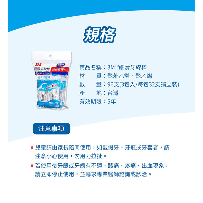 3M 細滑牙線棒單支裝量販包 每支牙線棒獨立包裝32支x3包(共96支)|32支x9包(共288支)Oral Care3M 授權官方旗艦館
