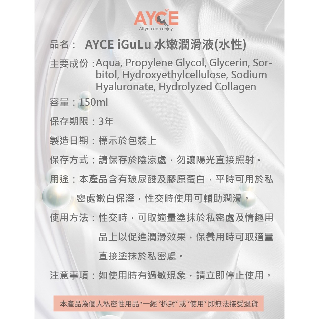AYCE iGuLu 玻尿酸 膠原蛋白水嫩潤滑液 150ml 情趣用品AYCE iGuLu 玻尿酸 膠原蛋白水嫩潤滑液 150ml 情趣用品LubricantsAYCE直營店