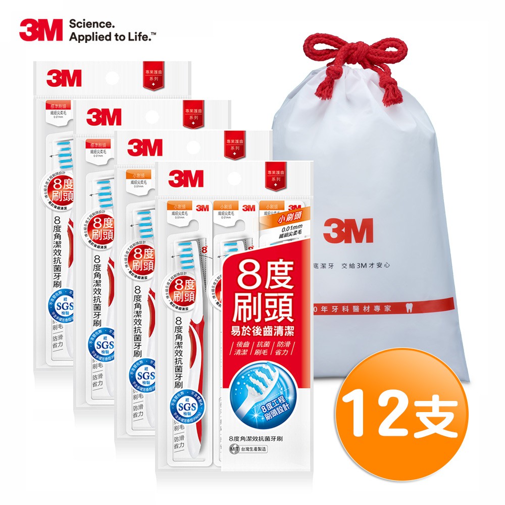 3M 8度角潔效抗菌牙刷軟毛12支組-顏色隨機+送防水束口袋 三款可選標準刷頭(12支)|小刷頭6支+標準刷頭6支|小刷頭(12支)Oral Care3M 授權官方旗艦館