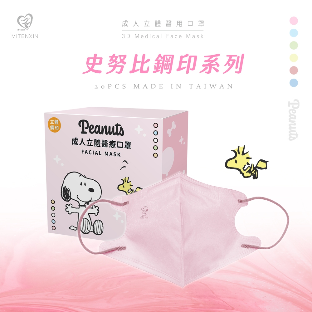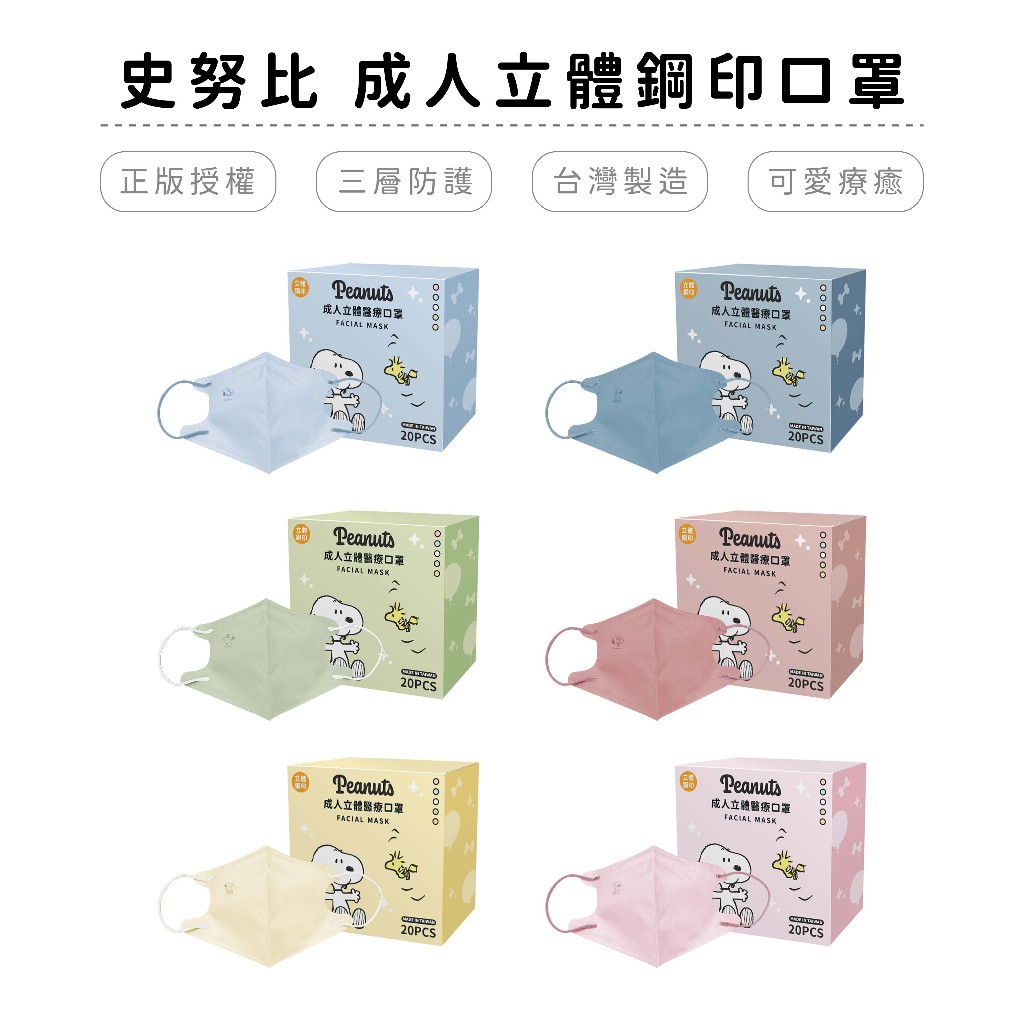 史努比 SNOOPY C型成人醫療口罩 立體設計 台灣製造 (20入/盒)【5ip8】TN0052寶寶藍|粉色|黃色|綠色|乾燥玫瑰|天空藍Medical Gloves & Masks5IP8居家生活館