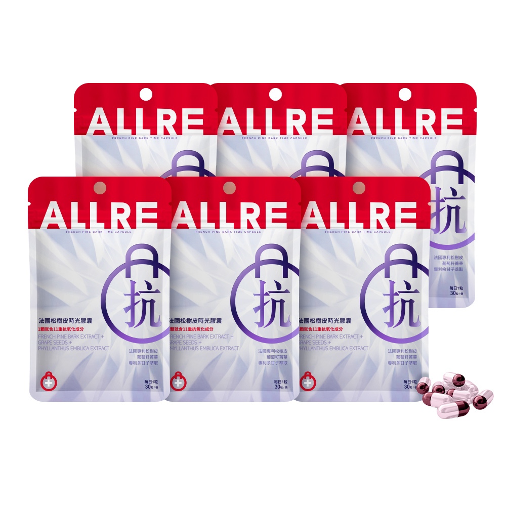 【ALLRE 歐瑞生醫】法國松樹皮時光膠囊 (30粒/袋) 6袋組