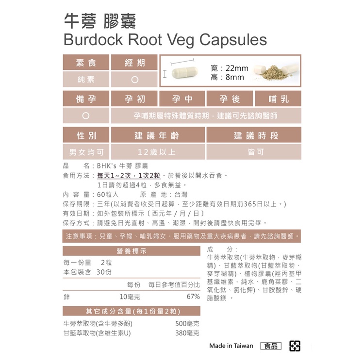 BHK’s 牛蒡萃取 素食膠囊 (60粒/盒) 官方旗艦店1盒|2盒Well BeingBHK’s 官方旗艦店