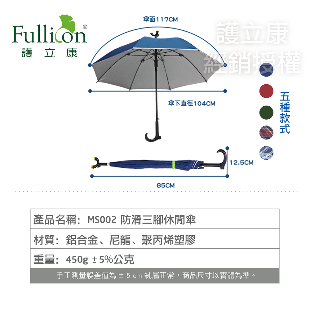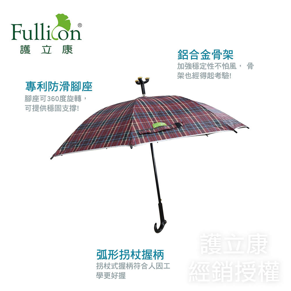 宅配免運【Fullicon護立康】防滑三腳休閒傘MS002(助行傘/銀髮族/長輩/止滑傘/輔助雨傘/登山傘)深藍|深綠|深紅|藍格|紅格Injury & Disability SupportBezzie醫材美妝館