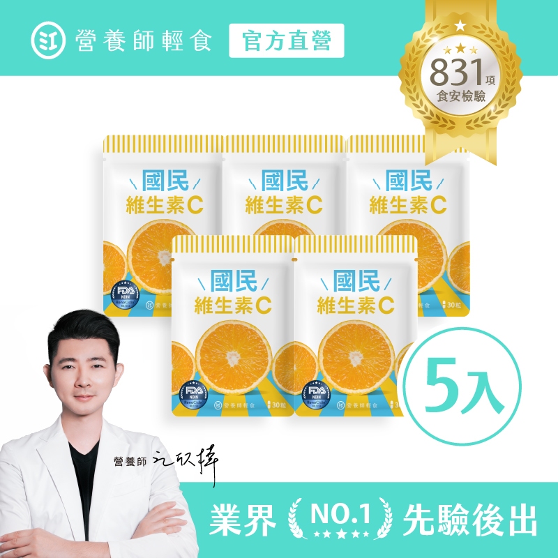 ❮營養師輕食❯國民維生素C 五入組 (30顆/入)台灣最高學府技轉,添加RenoCidin橙皮素,超級維他命C,維生素C