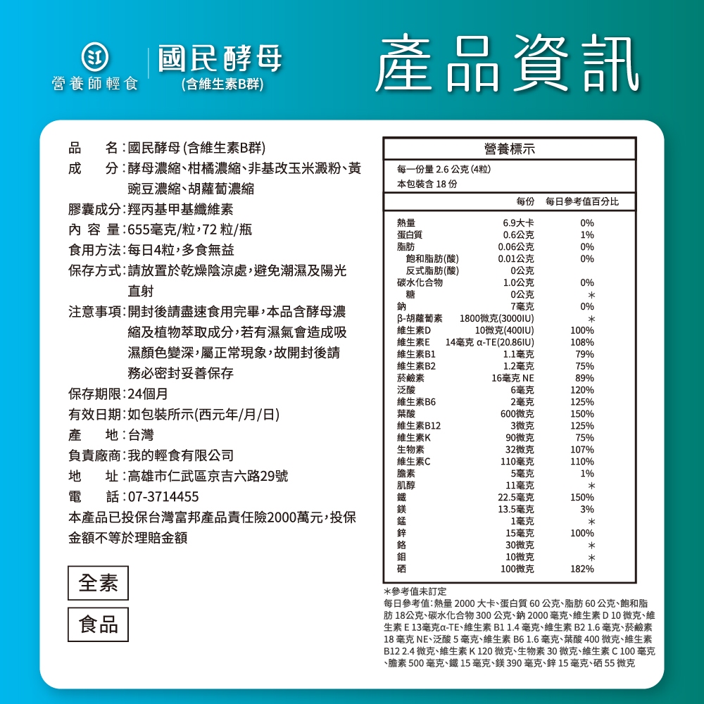 ❮營養師輕食❯國民酵母B群綜合維他命 一入組 (72顆/入) 全球獨家,專為台灣人打造的天然型態國民營養B群,國民B群1組為1入Well Being【唯一直營】營養師輕食®|2025全台唯一 榮獲國際+國內純淨雙標章