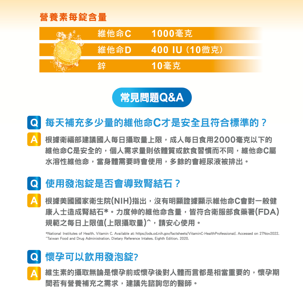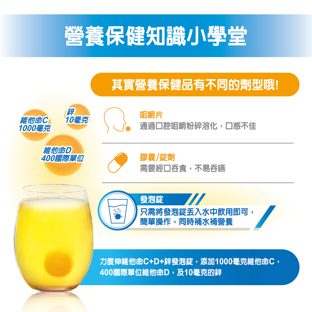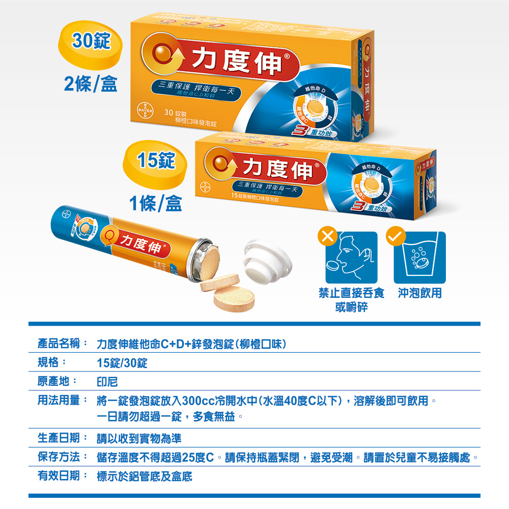 力度伸 維他命C+D+鋅 發泡錠 30錠(柳橙口味) | 台灣拜耳官方旗艦店