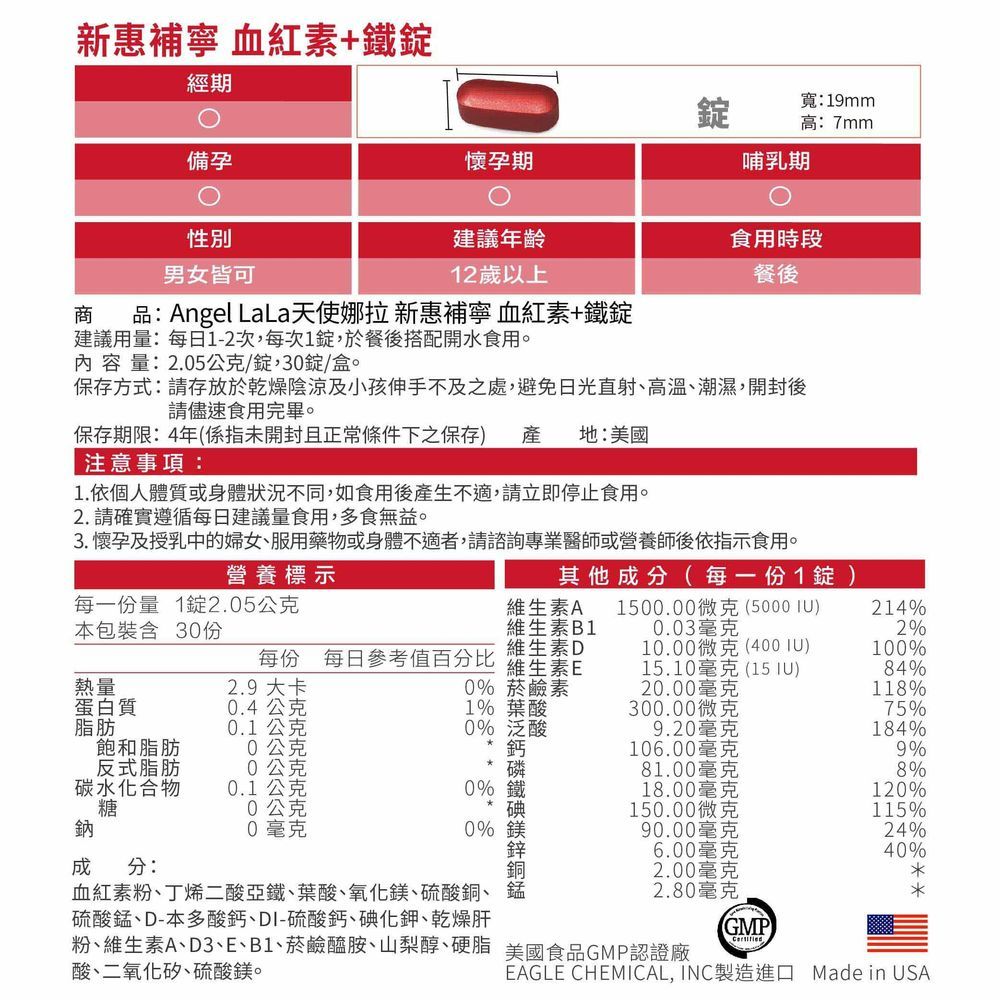 【Angel LaLa天使娜拉】新惠補寧 粉潤紅 血紅素+鐵錠(30錠/盒) 賴雅妍代言 美國藥廠製造 18毫克鐵 女性6盒|1盒|3盒Well Being【官方旗艦店】Angel LaLa 天使娜拉 你的美麗生活