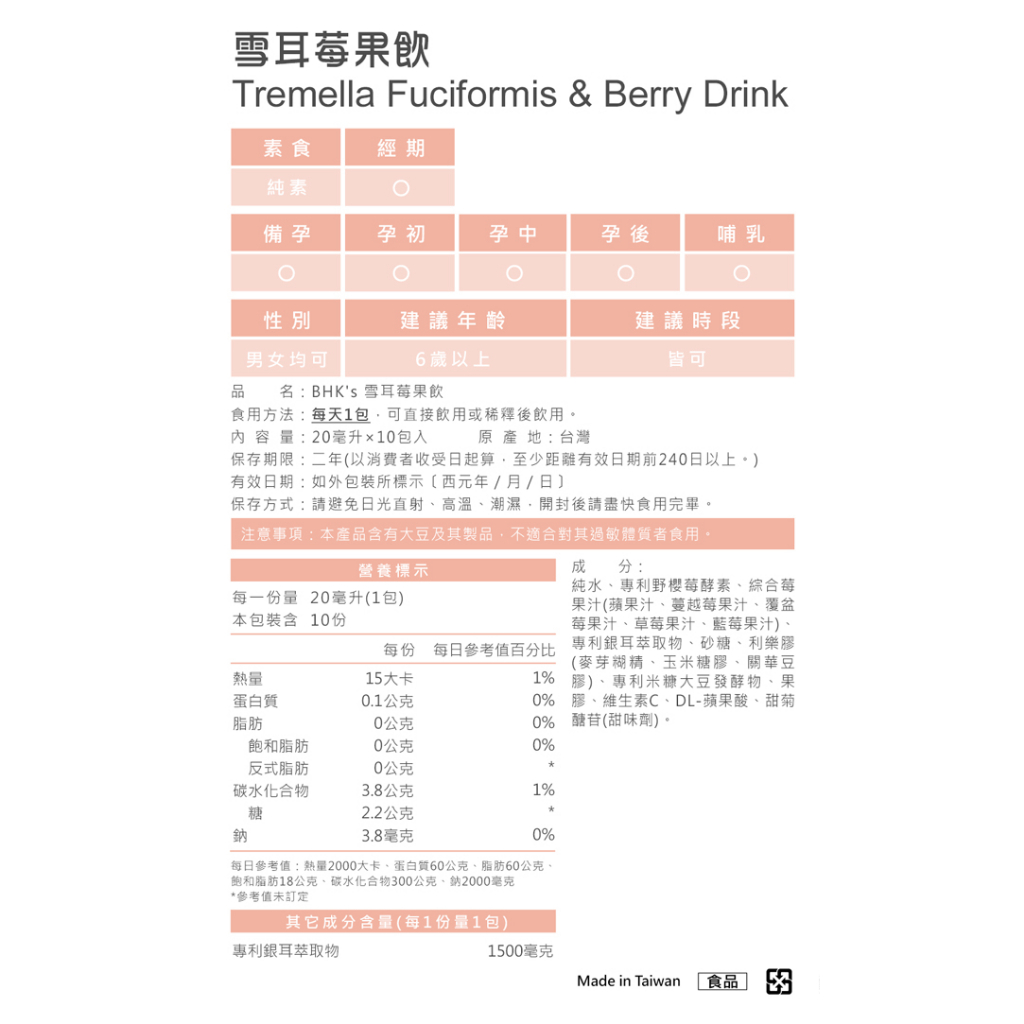 BHK’s 雪耳莓果飲 (20ml/包;10包/盒) 官方旗艦店1盒|2盒Beauty SupplementsBHK’s 官方旗艦店