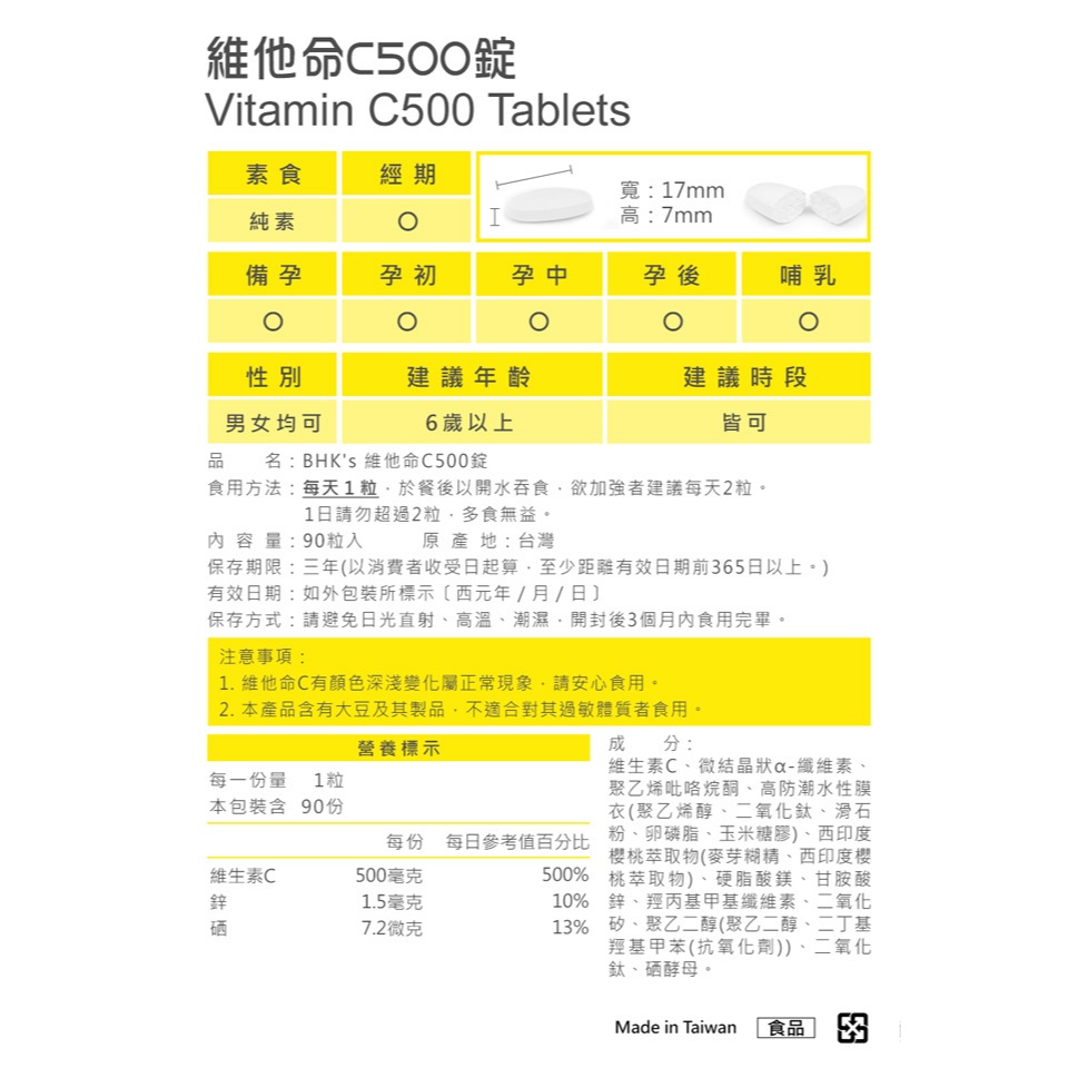 BHK’s 維他命C500錠 (90粒/瓶) 官方旗艦店
