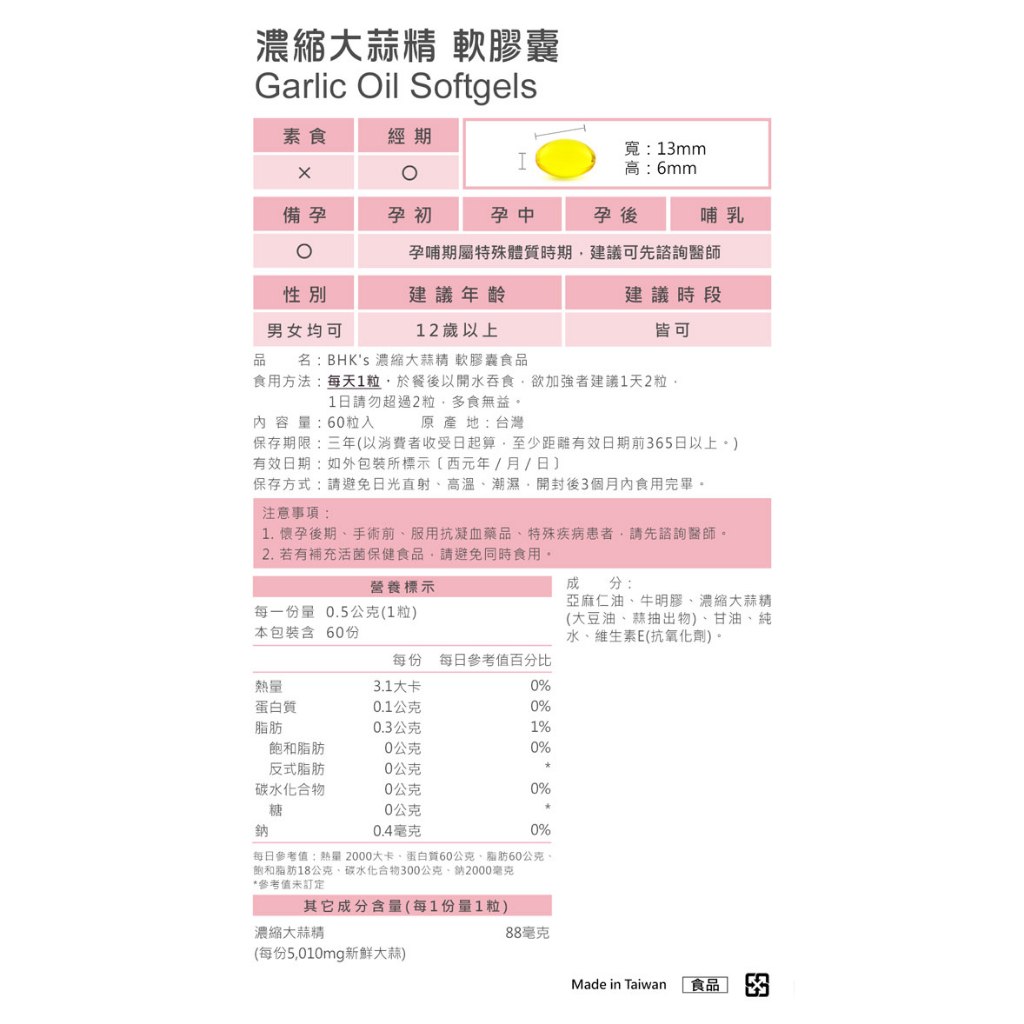 BHK’s 濃縮大蒜精 軟膠囊 (60粒/盒) 官方旗艦店1盒|2盒Well BeingBHK’s 官方旗艦店