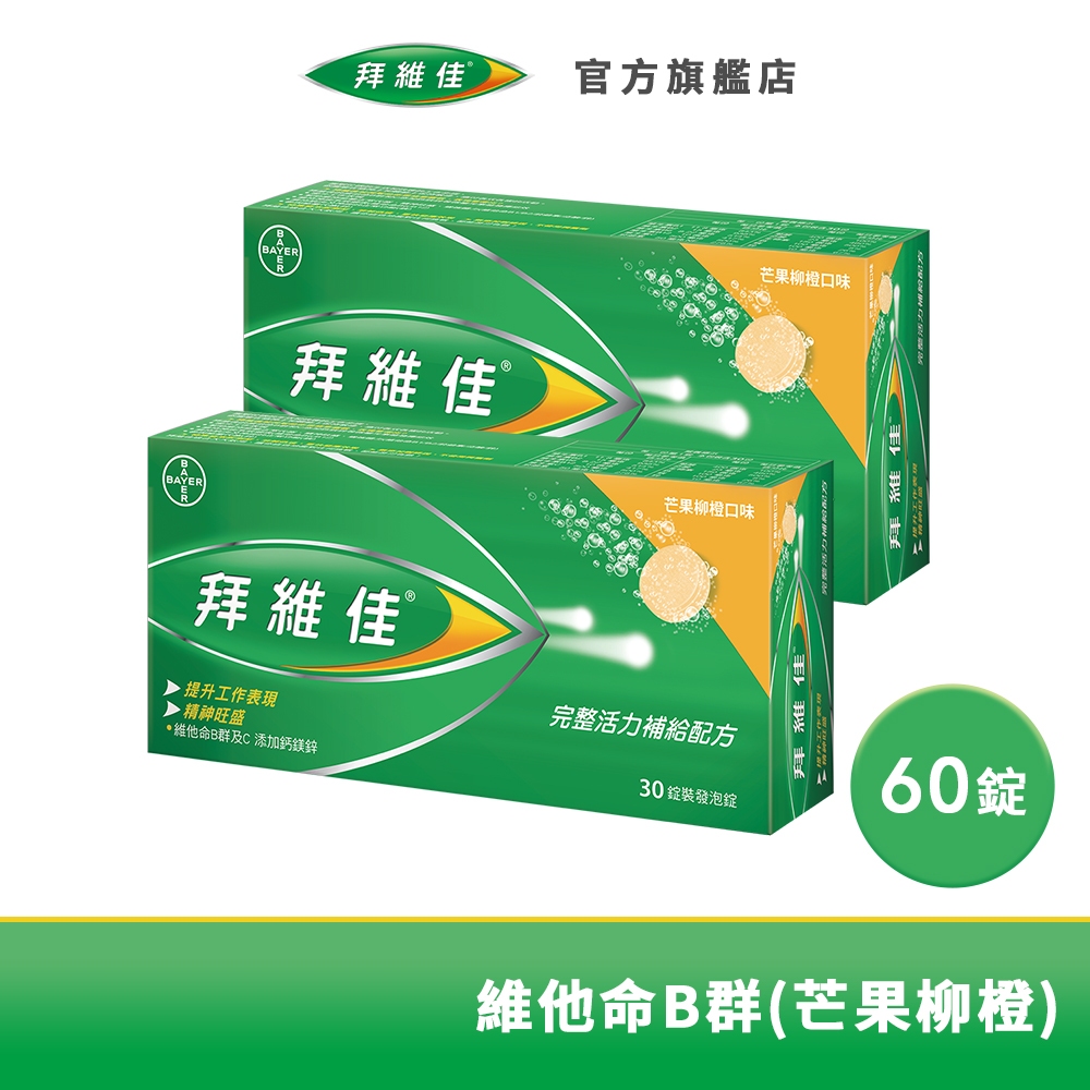 【集點加購專屬賣場】拜維佳 維他命B群 發泡錠30錠x2盒 (芒果柳橙口味) (效期至20251013) 買1盒送1盒發泡錠芒果30錠X2盒Well BeingBayer台灣拜耳品牌旗艦館