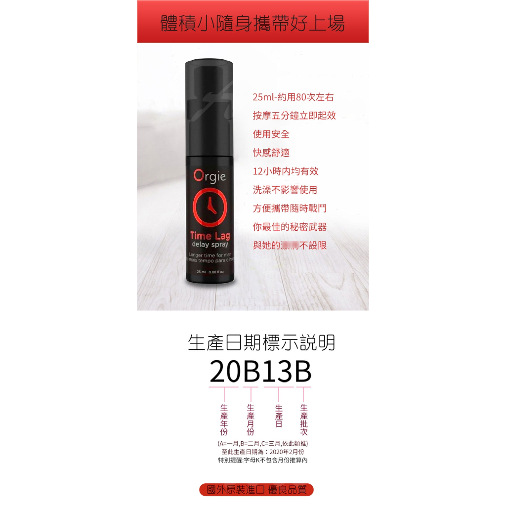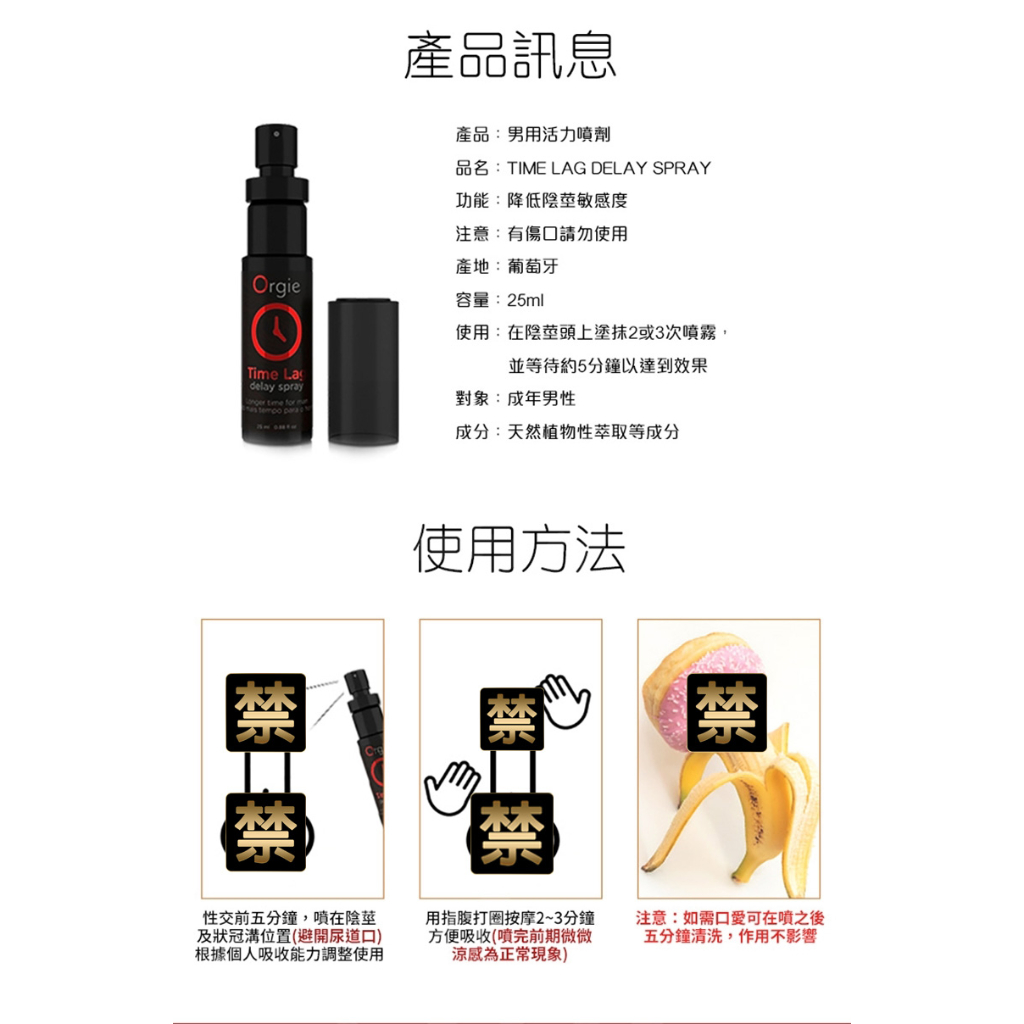 葡萄牙 Orgie TIME LAG 男用 久時 長效 噴霧劑 25ml 射精延遲 老二持久液【1010SHOP】葡萄牙 Orgie TIME LAG 男用 久時 長效 噴霧劑 25ml 射精延遲 老二持久液【1010SHOP】Lubricants1010shop 各式保險套專賣 潤滑液 按摩棒 跳蛋 飛機杯 情趣用品