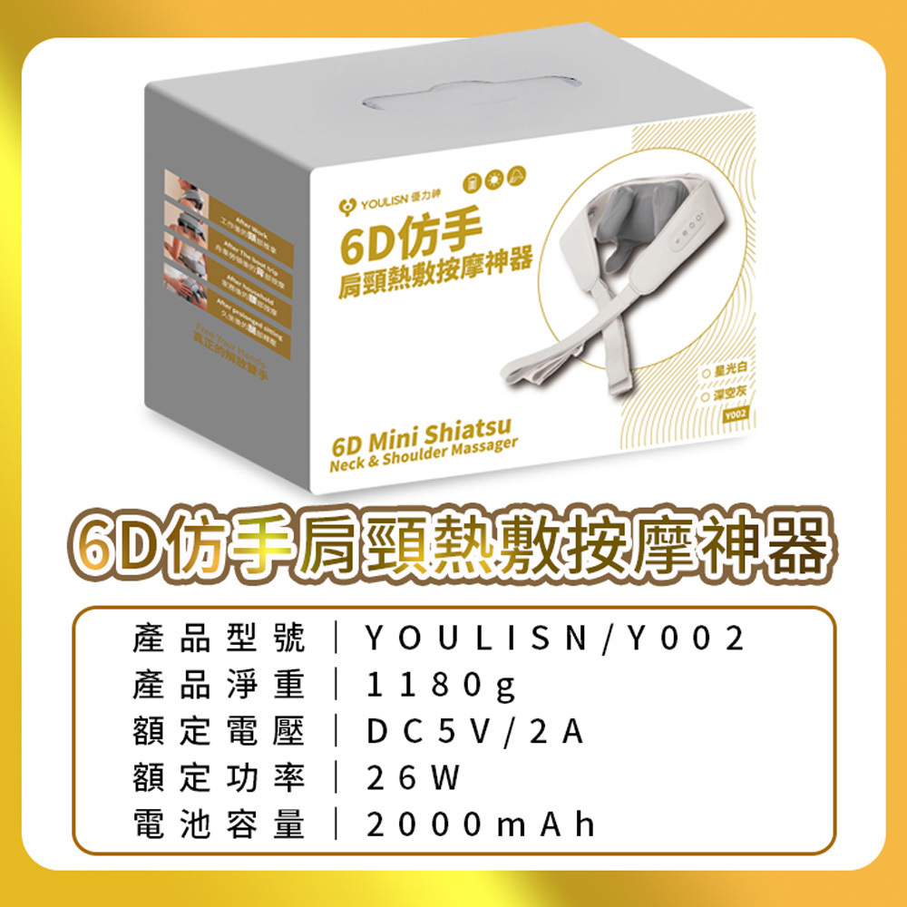 【免運/現貨】無線肩頸按摩器Y900【YOULISN優力神】6D仿手肩頸熱敷按摩神器【1313健康館】比按摩棒方便好用深空灰|星光白Massage & Therapy Devices1313life