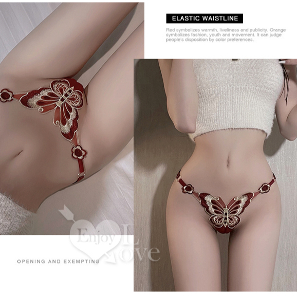 享樂網|蝴蝶刺繡 彈力帶丁字褲 輕盈透氣 性感內褲|丁字褲 性感內褲 內褲 女生內褲 性感內褲 情趣內褲 性感丁字褲黑|酒紅Sex Toys「享樂網❤情趣用品|台灣現貨速發🚀」