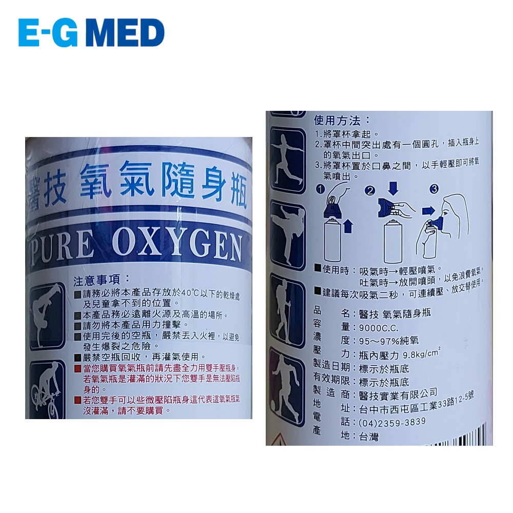 【E-GMED 醫技】隨身氧氣瓶(9000cc/罐) 氧氣罐 氧氣隨身瓶 登山氧氣罐 O2 純氧 醫技氧氣隨身瓶 醫技【E-GMED 醫技】隨身氧氣瓶(9000cc/罐) 氧氣罐 氧氣隨身瓶 登山氧氣罐 O2 純氧 醫技氧氣隨身瓶 醫技Pain RelieversBezzie醫材美妝館