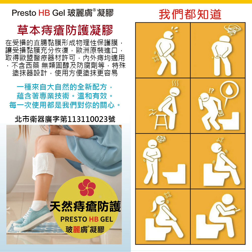 *醫材字號*【玻麗膚】玻麗膚痔瘡凝膠PRESTO HB GEL (25g)-草本凝膠 屁屁保護/便便不卡卡/安心坐*醫材字號*【玻麗膚】玻麗膚痔瘡凝膠PRESTO HB GEL (25g)-草本凝膠 屁屁保護/便便不卡卡/安心坐Pain RelieversBezzie醫材美妝館