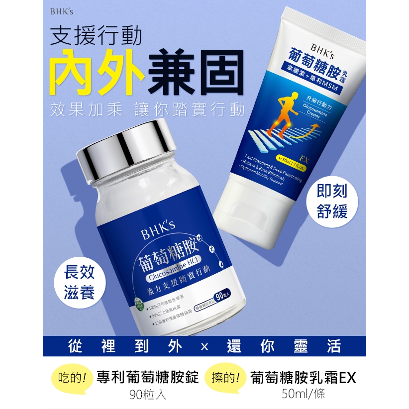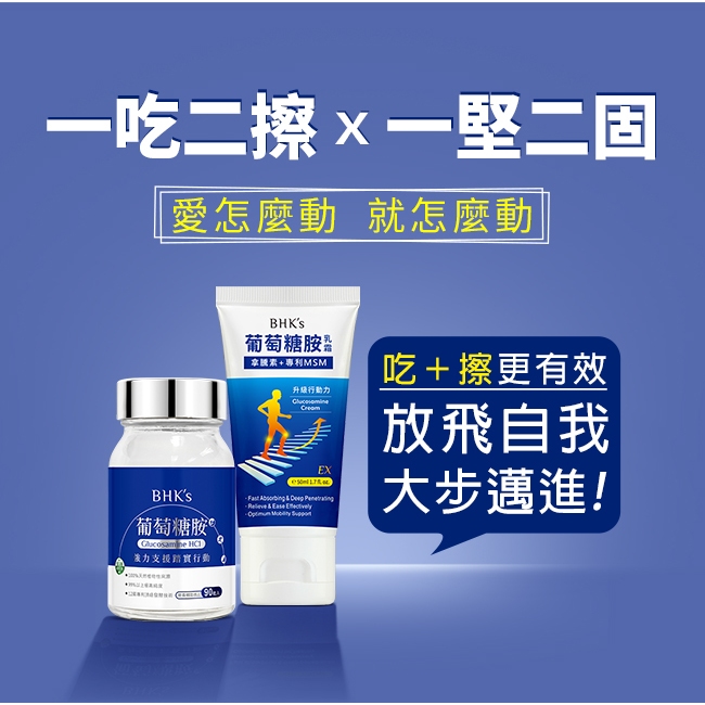 BHK’s 環節行動組 葡萄糖胺錠(90粒/瓶)+葡萄糖胺乳霜EX(50ml/條)BHK’s 環節行動組 葡萄糖胺錠(90粒/瓶)+葡萄糖胺乳霜EX(50ml/條)Well BeingBHK’s 官方旗艦店