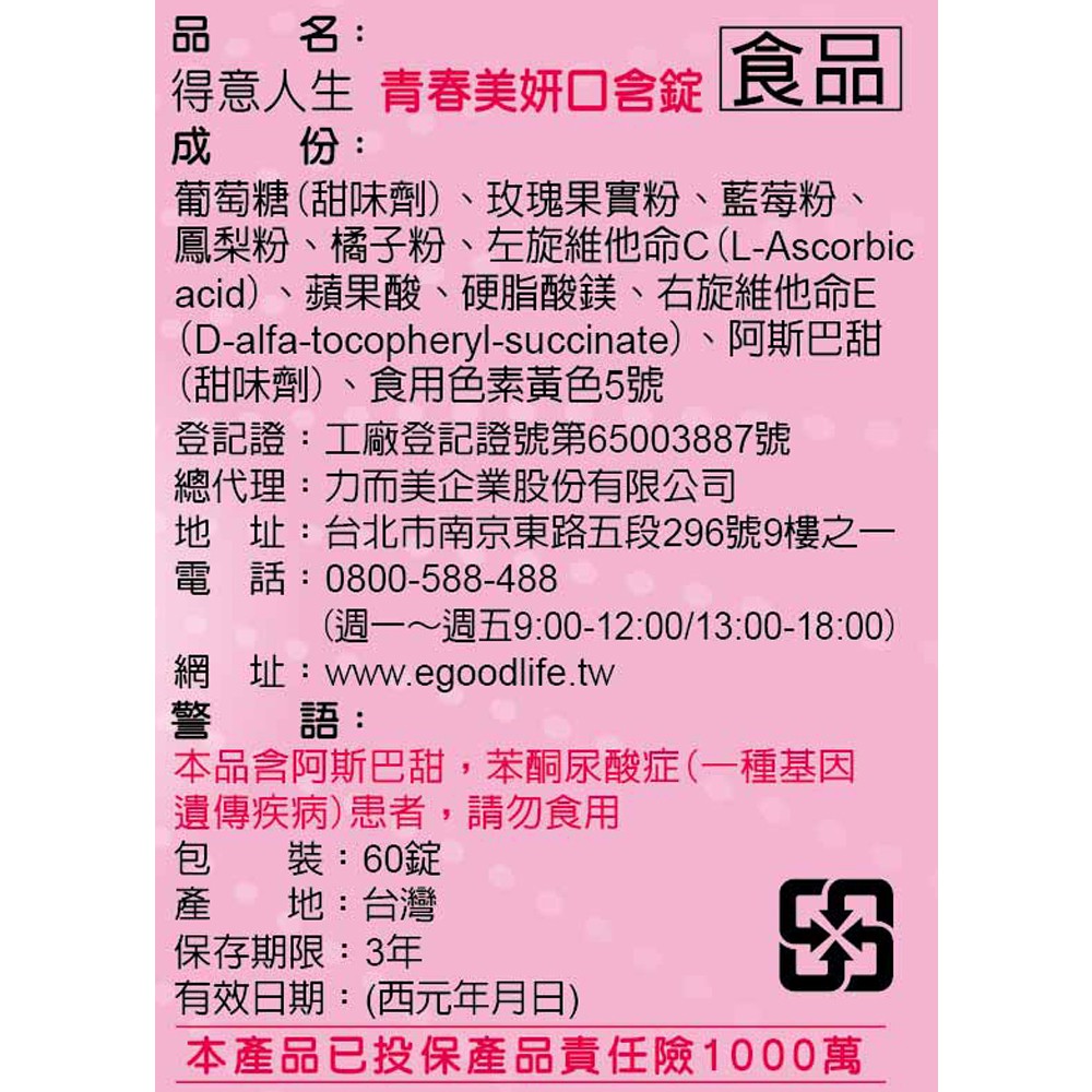 【得意人生】青春美妍口含錠 (含維他命C+E) (60錠/罐)1入|2入|4入Well Being《Goodlife得意人生》
