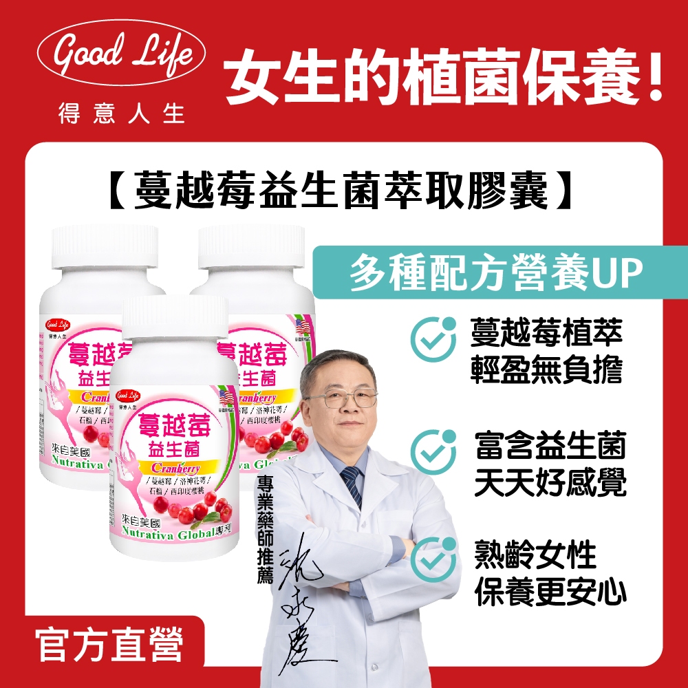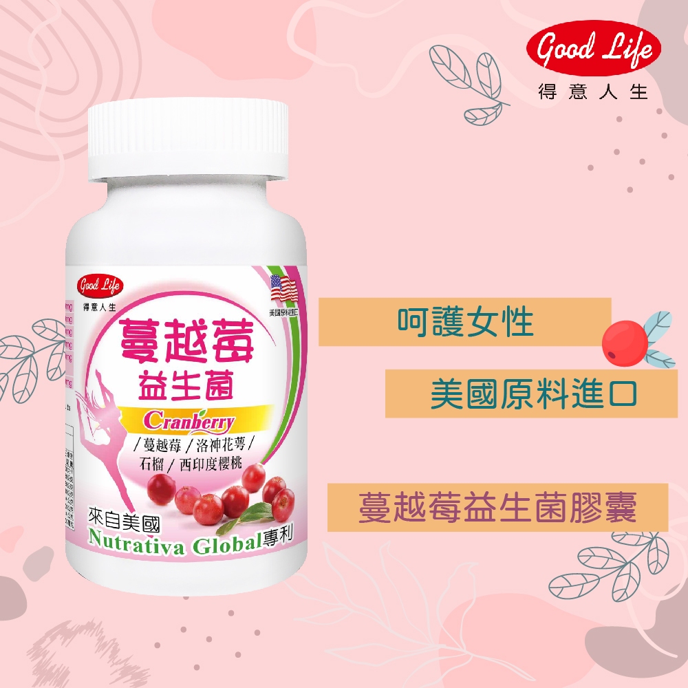 【得意人生】蔓越莓益生菌萃取膠囊(60粒/罐) 私密保健/洛神花萼/石榴/櫻桃/綜合乳酸菌/私密處保養1入|3入Well Being《Goodlife得意人生》