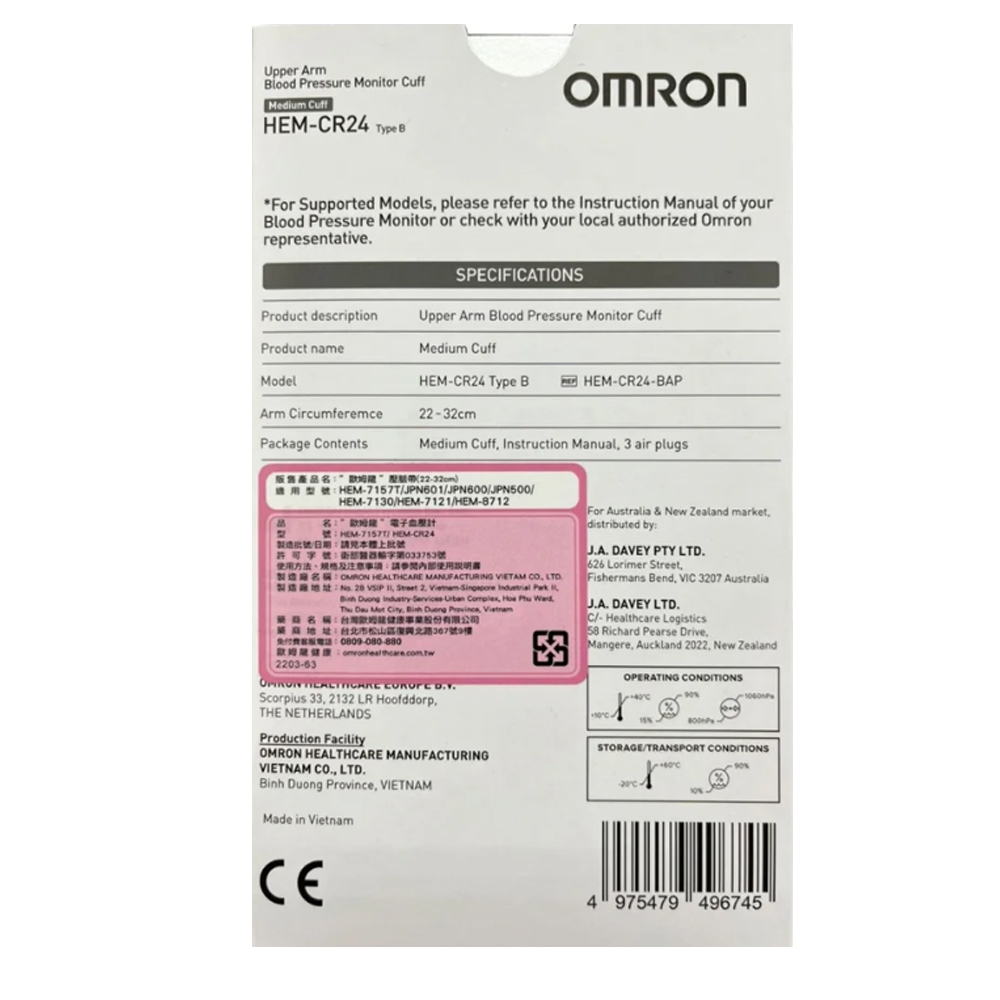 【OMRON 歐姆龍】原廠血壓計壓脈帶-軟式含接頭(M 22-32 HEM-CR24)【OMRON 歐姆龍】原廠血壓計壓脈帶-軟式含接頭(M 22-32 HEM-CR24)Health Monitors & TestsBezzie醫材美妝館