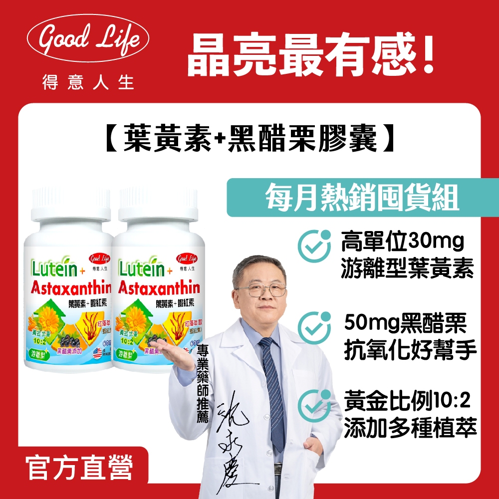 【得意人生】葉黃素+蝦紅素膠囊 游離型+玉米黃素+黑醋栗+多種維生素(60粒/罐) 二入組 買就送晶亮葉黃素(60錠)二入 送晶亮葉黃素(60錠)Well Being《Goodlife得意人生》