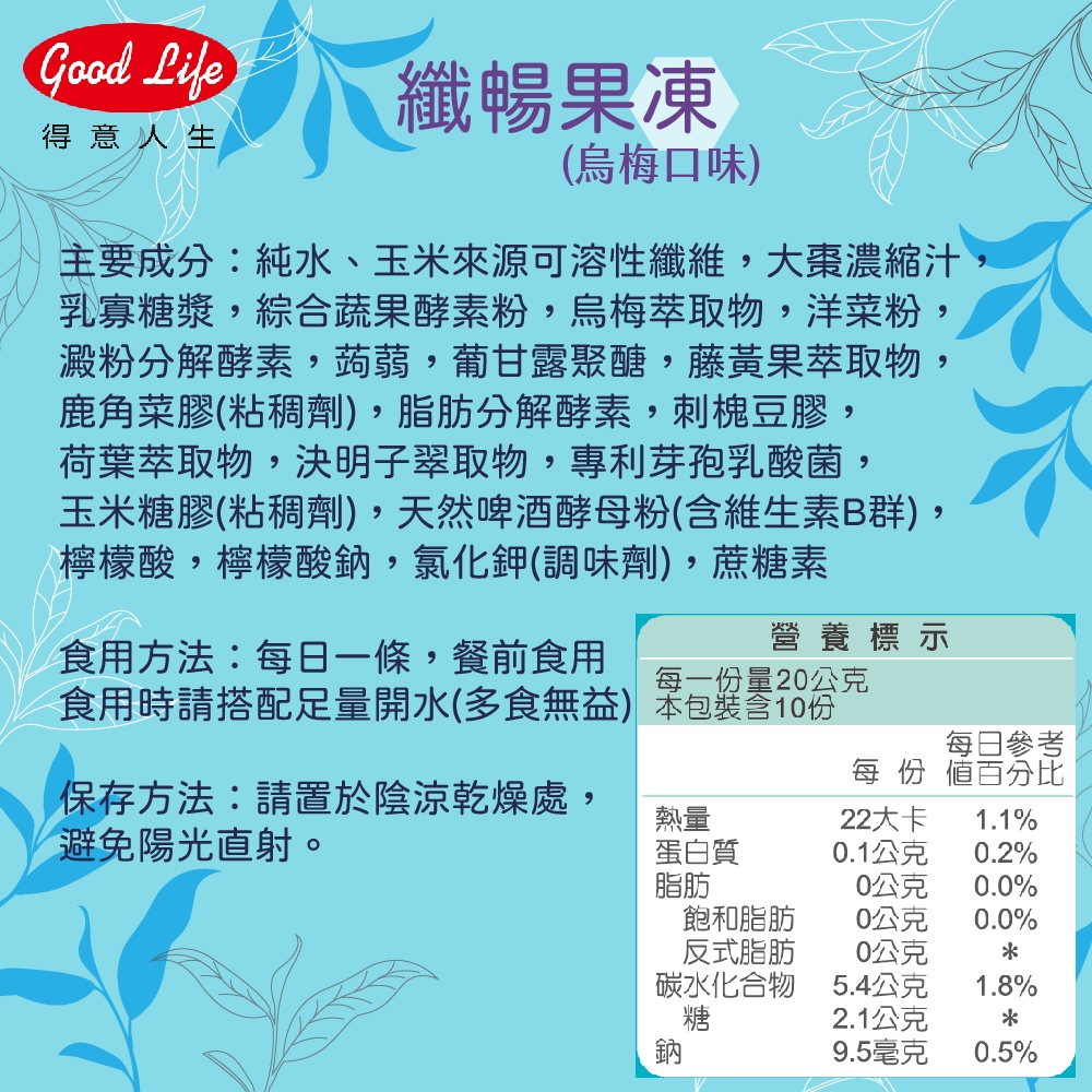 【得意人生】纖暢果凍(烏梅口味) 20g 10包/盒 藤黃果/酵素果凍/烏梅口味一盒|三盒Weight Management《Goodlife得意人生》