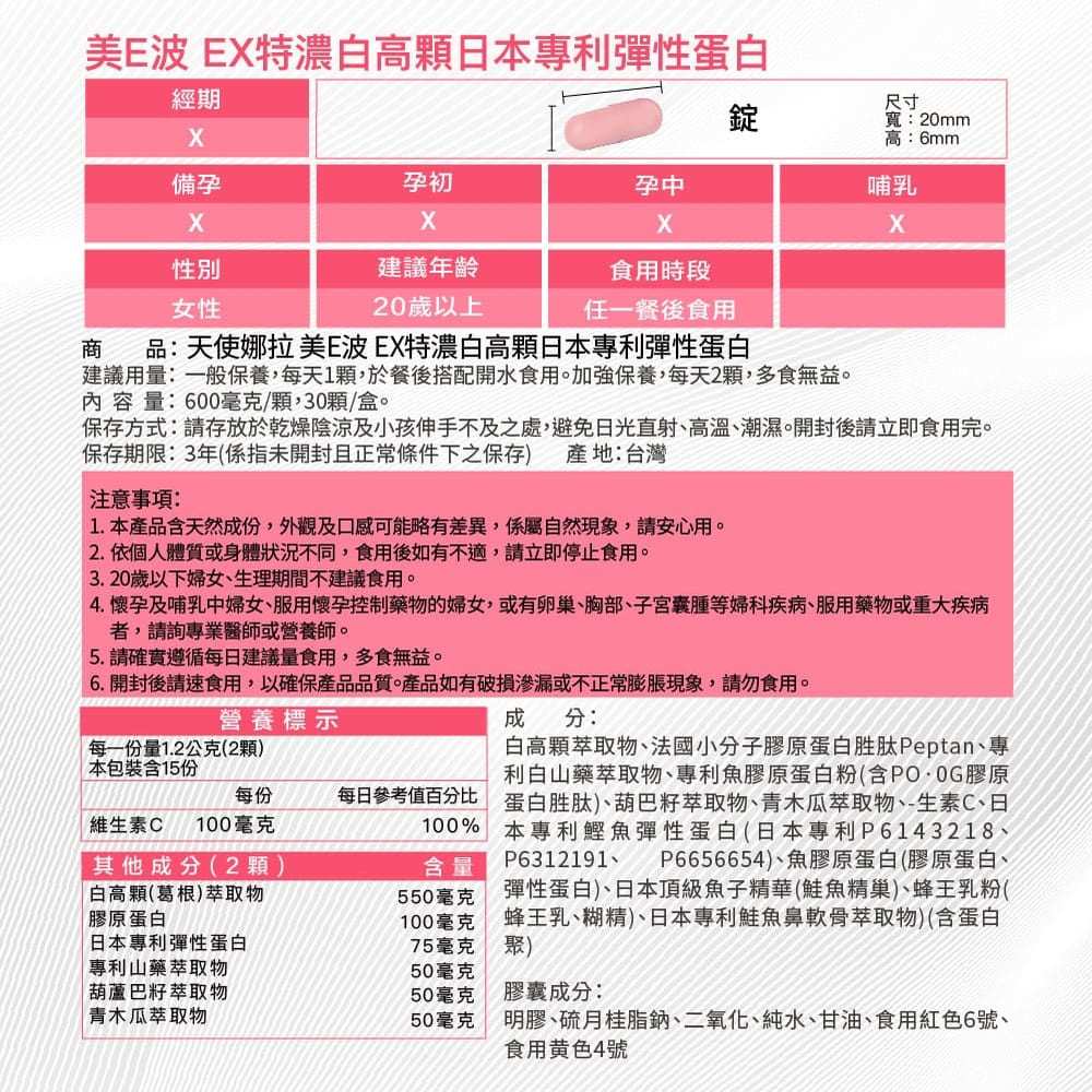 【Angel LaLa天使娜拉】美E波 超濃白高顆(30顆/盒) 白高顆 葫蘆巴籽 白山藥 胜肽膠原 彈性蛋白 提澎美波1盒|3盒|6盒Beauty Supplements【官方旗艦店】Angel LaLa 天使娜拉 你的美麗生活
