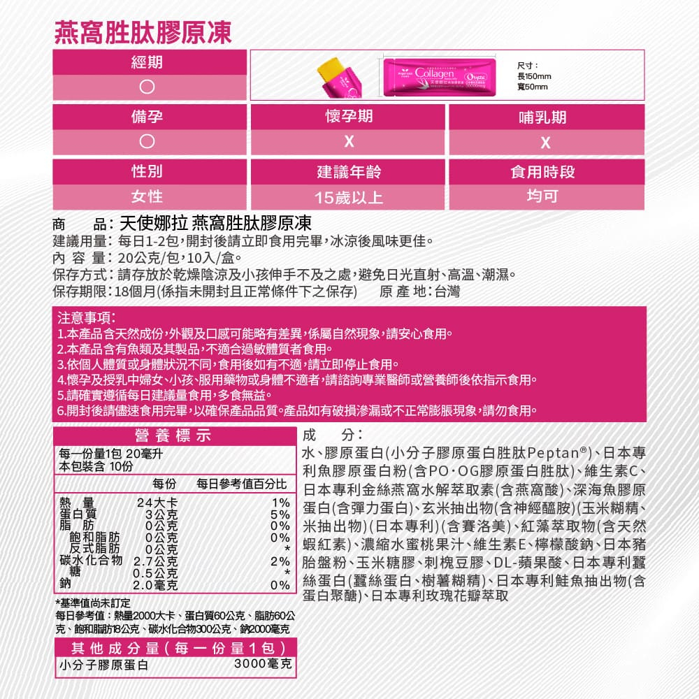 Angel LaLa天使娜拉_燕窩胜肽煥妍膠原蛋白凍(水蜜桃風味/10包/多組盒) 賴維妍 胜肽 燕窩酸 玻尿酸1盒|3盒|5盒Beauty Supplements【官方旗艦店】Angel LaLa 天使娜拉 你的美麗生活