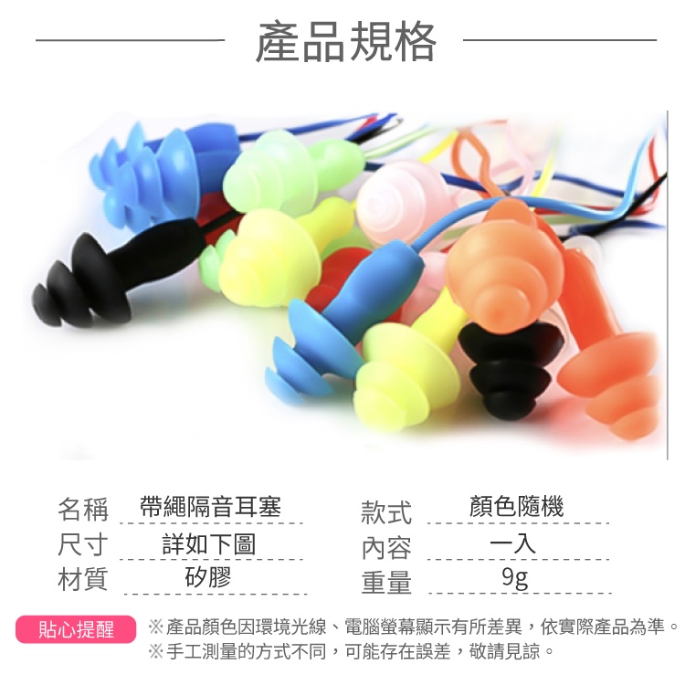 帶繩隔音耳塞【小麥購物】【D061】隔音耳塞 噪音耳塞 睡眠耳塞 矽膠耳塞 游泳耳塞 螺旋耳塞 靜音顏色隨機Ear Care 小麥購物
