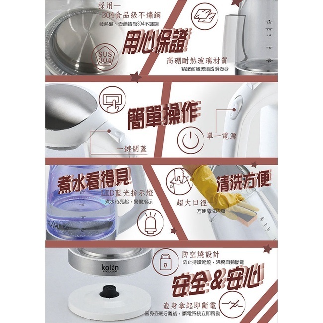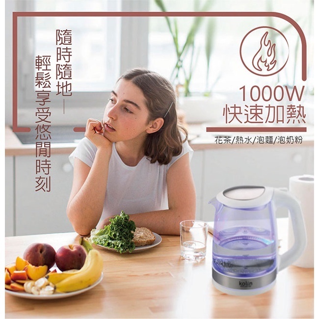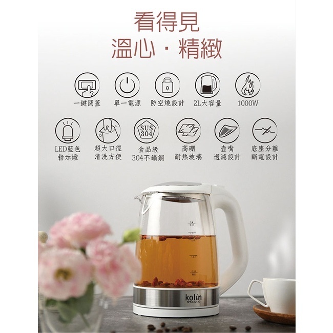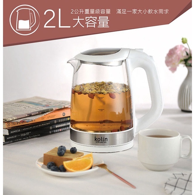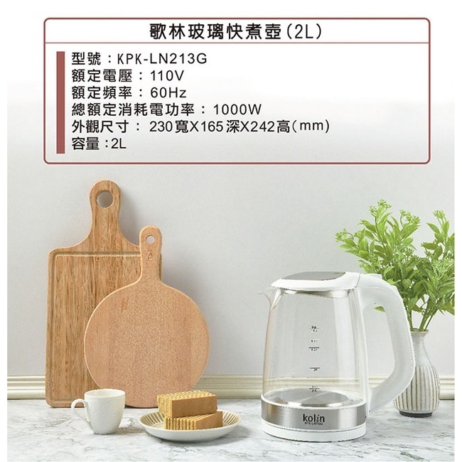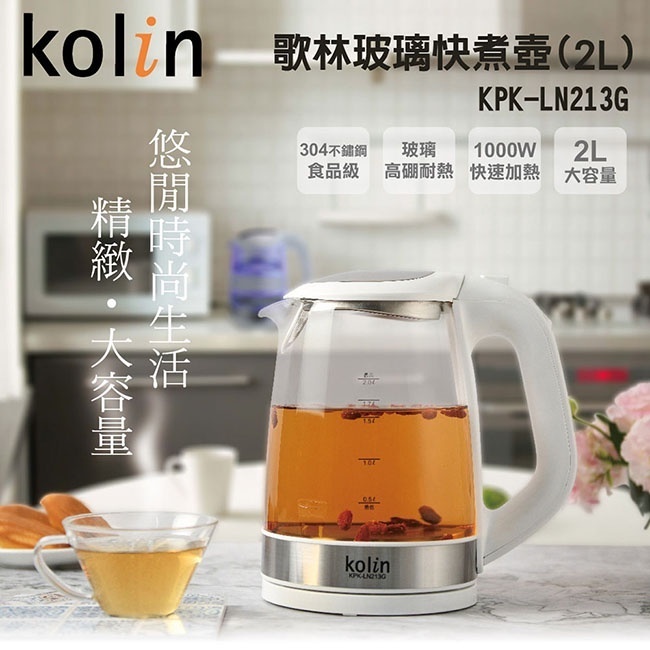 [A級福利品‧數量有限]【Kolin 歌林】 2L玻璃快煮壺 KPK-LN213G[A級福利品‧數量有限]【Kolin 歌林】 2L玻璃快煮壺 KPK-LN213GKettlesAll Sale電器共和國