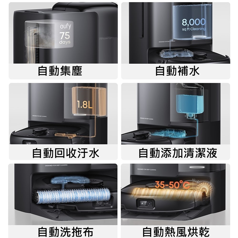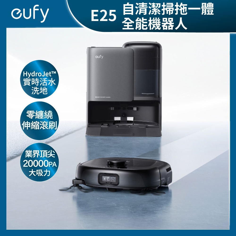EUFY Omni E25 自清潔掃拖一體全能機器人 活水洗地/零纏繞伸縮滾刷/20000PA大吸力 Beutii黑色Vacuum Cleaners & Floor Care AppliancesBeutii質感家電選品
