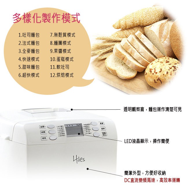 Hiles DC直流變頻省電全自動製麵包機(HE-1182)送隔熱手套1個12種模式 黑金鋼不沾內鍋 特A級福利品麵包機(HE-1182)|麵包機(HE-1182)+料理秤Specialty Cookware【E-MAN】電氣男數位購物商城
